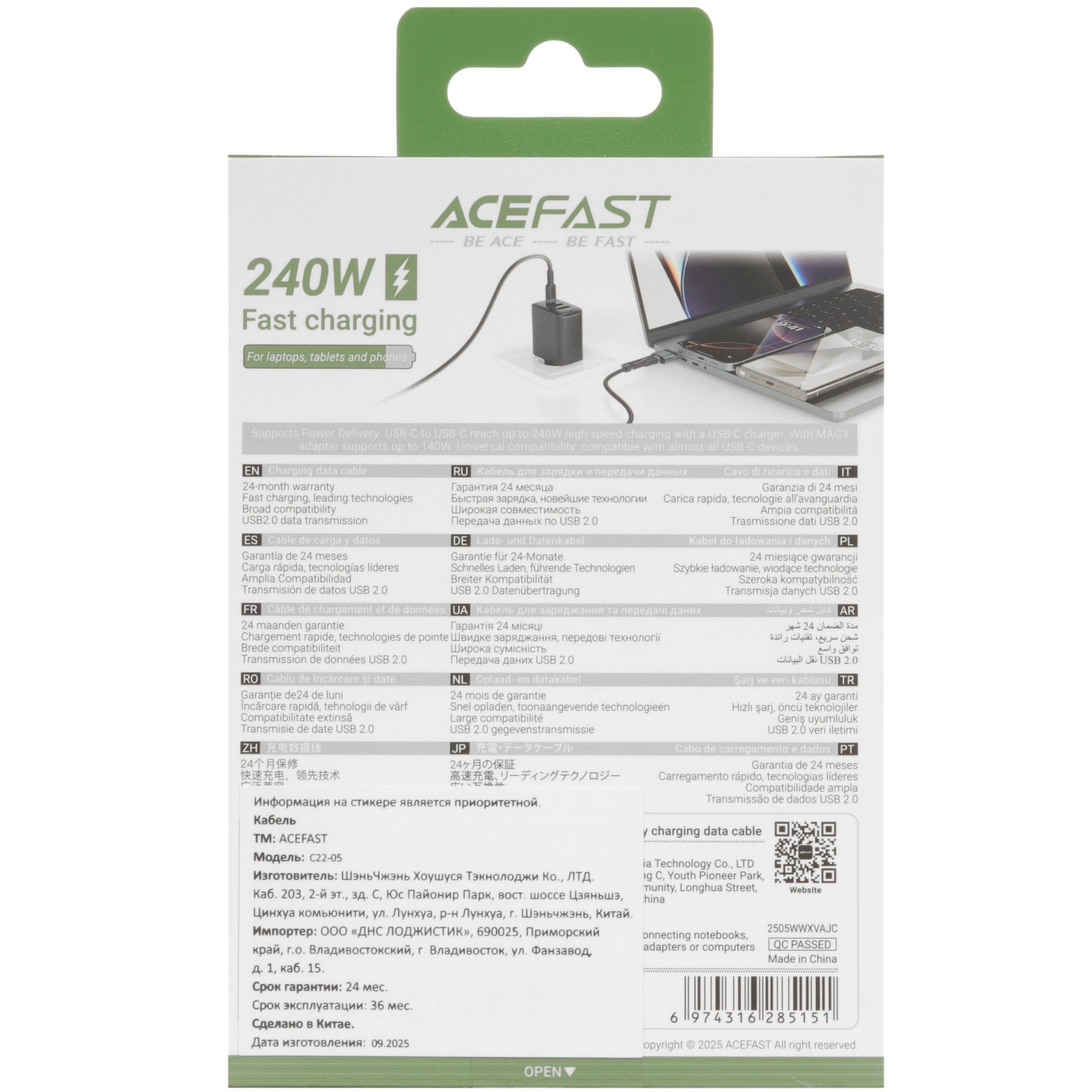 Кабель Acefast C22-05 2в1 USB-C-USB-C+MagSafe длиной 1,2 метра выполнен из прочного нейлона и поддерживает подачу тока до 5А, что обеспечивает быструю и безопасную зарядку различных устройств. Благодаря комбинированным разъемам USB-C и MagSafe, кабель идеально подходит для зарядки смартфонов, планшетов и ноутбуков, а также обеспечивает удобство в использовании и долговечность.