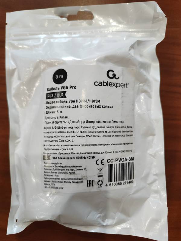 Двойное экранирование защищает от электромагнитных помех. Благодаря длине 3 м кабель Cablexpert гарантирует удобное пользование при подключении на удаленном расстоянии. Прочная оплетка уберегает провода от повреждений.