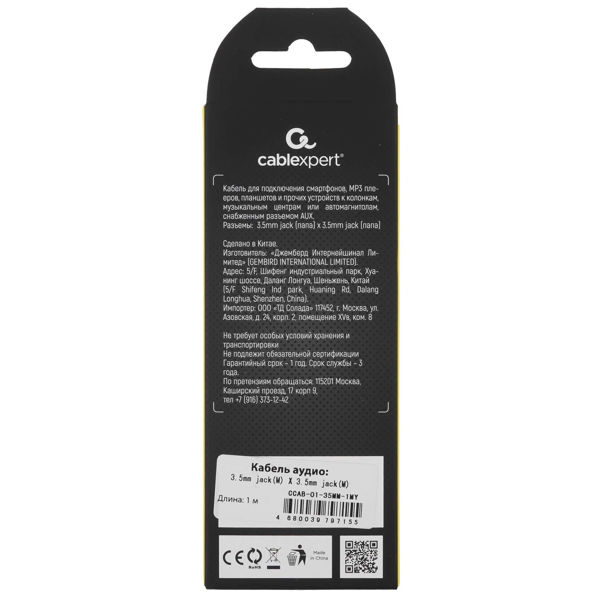 Cablexpert 3.5 mm jack - 3.5 mm jack длиной 1 м не занимает много места и не мешает при подключении устройств между собой. Плотная оплетка сохраняет гибкость и устойчивость к износу. Жесткие штекеры с позолоченными контактами гарантируют надежность соединения и передачу аудиосигнала без ухудшения качества.