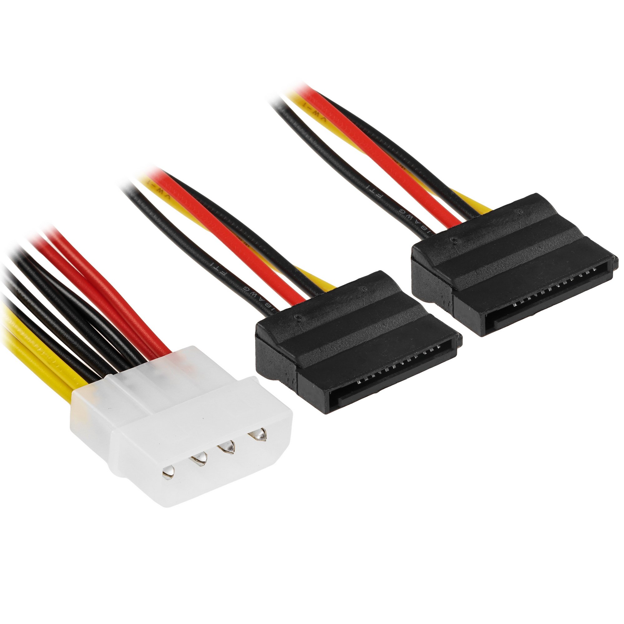 Кабель питания разветвитель MOLEX-2SATA предназначен для обеспечения питания жестких дисков (HDD и SSD), оптических приводов с разъемом SATA.