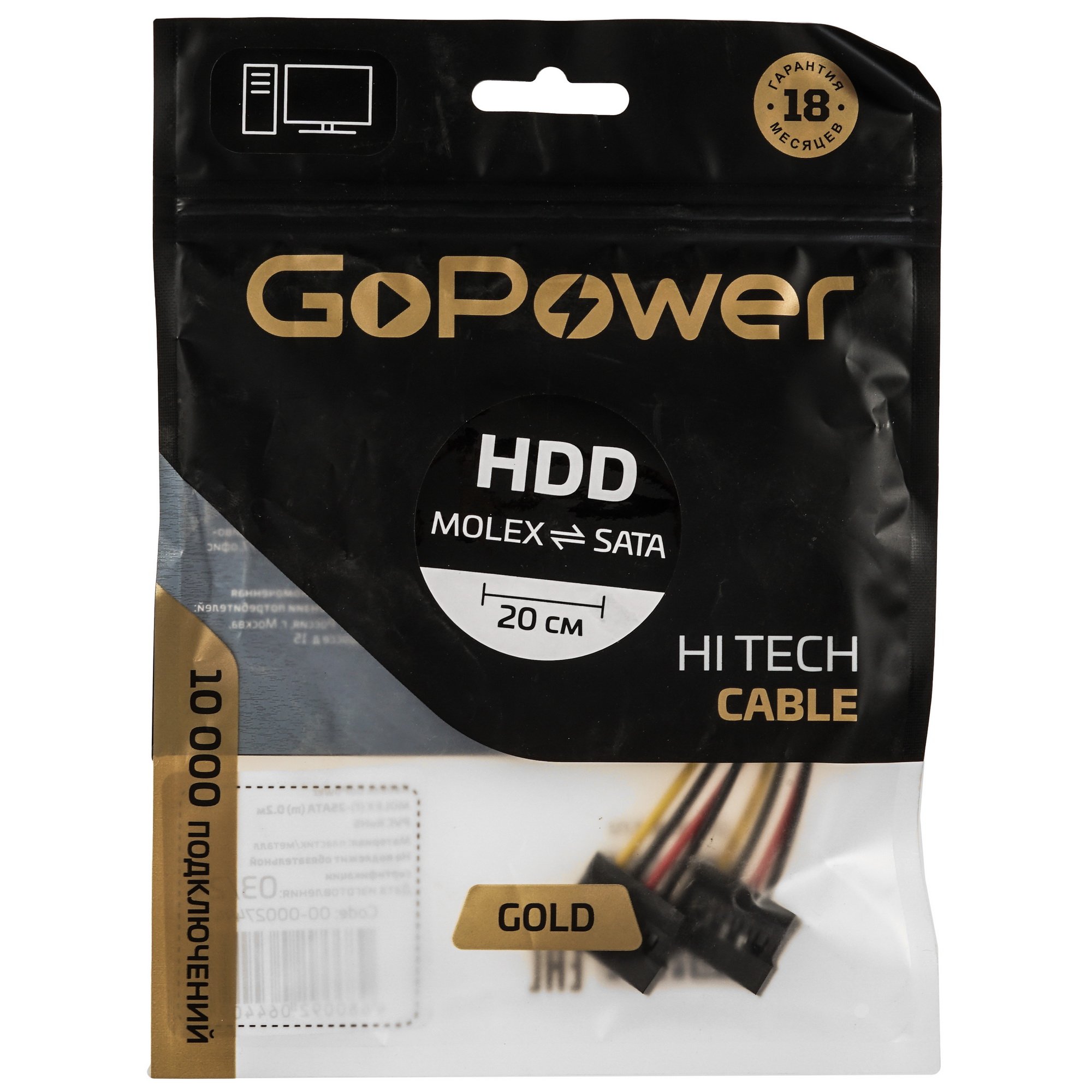 Кабель GoPower MOLEX (F)-2SATA (M) 0.2M 00-00027494