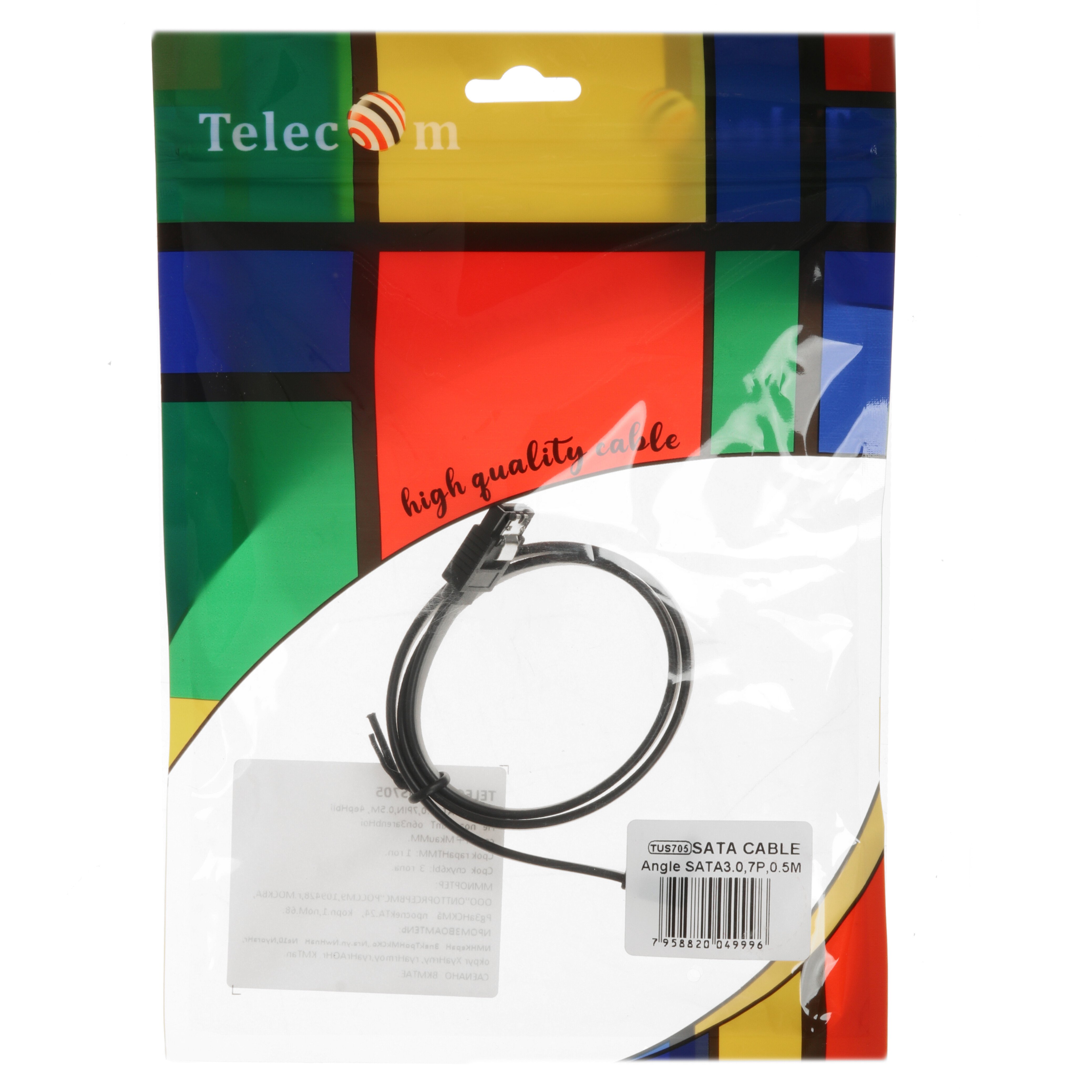 Кабель SATA M --SATA M 3.0V 7 pin угловой разъем Telecom 0.5m <TUS705-0.5M>