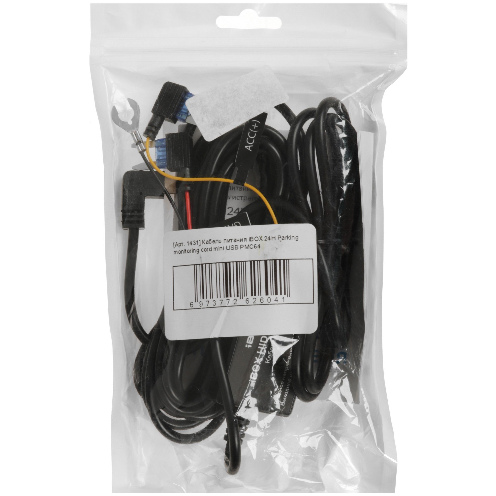 Умный кабель iBOX 24H Parking Monitoring Cord Mini USB PMC64 функционален при работающем и заглушенном авто: запитывает устройство от аккумуляторных батарей 12В и 24В. После остановки двигателя автомобиля функции видеорегистратора “Режим парковки" начинает работать в штатном режиме. Обеспечивает защиту аккумулятора автомобиля: специальный блок автоматического контроля напряжения защищает аккумулятор от критической разрядки: при падении напряжения ниже 11,6 В подача питания прекращается. Идеален для скрытой установки: длина кабеля — 3,5 м.