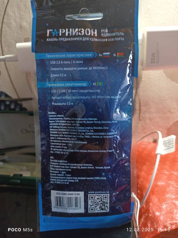 Гарнизон USB 2.0 Type-A - USB 2.0 Type-A выполняет функцию удлинителя при подключении USB-портов. Кабель сохраняет заданную скорость и стабильность передачи данных. С его помощью вы можете подключать разные периферийные устройства к ПК или ноутбуку.