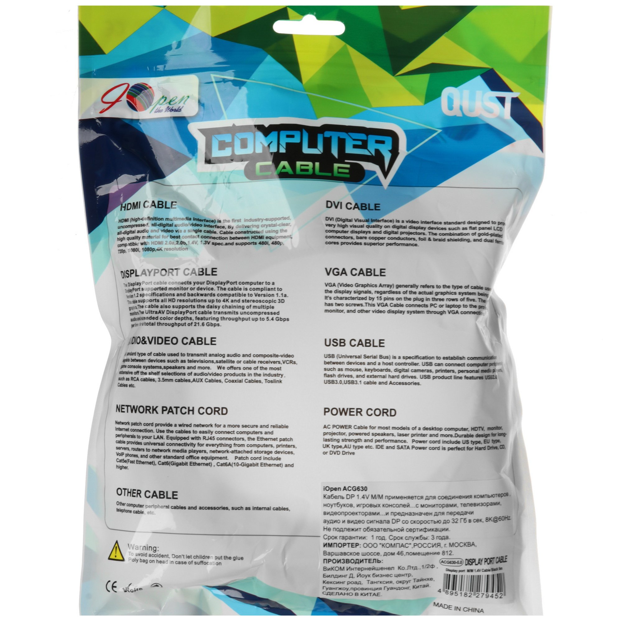 Кабель iOpen DisplayPort - DisplayPort, 5 м в сером цвете служит для соединения устройств с разъемом DisplayPort к устройствам c DisplayPort разъемом. Длина кабеля 5 метров позволяет разместить устройства на необходимом расстоянии друг от друга. Версия 1.4 гарантирует поддержку разрешения 7680x4320 и частоту обновления 60 Гц. Оплетка кабеля выполнена из ткани и защищает его от механических повреждений. Цифровой двунаправленный сигнал обеспечивает передачу данных в обоих направлениях без потери качества. Пропускная способность кабеля iOpen DisplayPort - DisplayPort, 5 м составляет 32 Гб/сек и позволяет смотреть фильм в формате 8К без задержки и потери качества. Кабель предназначен для соединения мониторов, проекторов, телевизоров и других устройств с поддержкой DisplayPort.