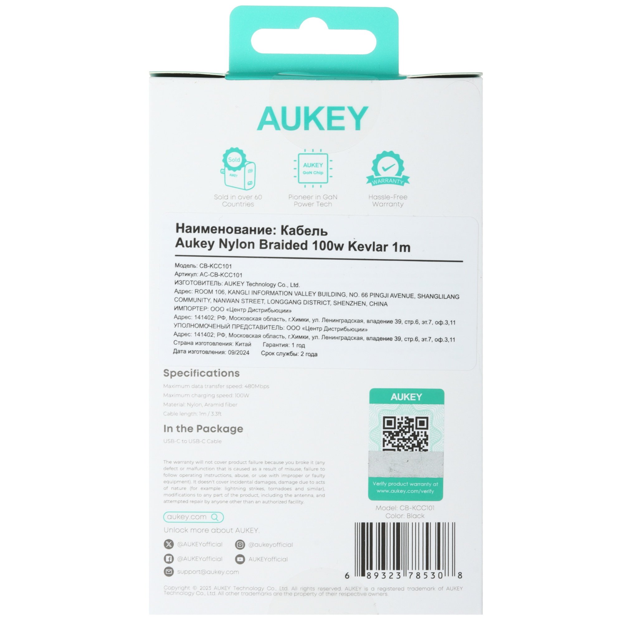 Кабель Aukey Nylon Braided Kevlar обладает способен передавать данные со скоростью 480 Мбит/с. Он приятен на ощупь и обеспечивает стабильную, быструю и безопасную зарядку устройств.