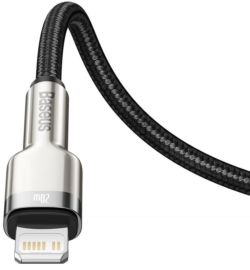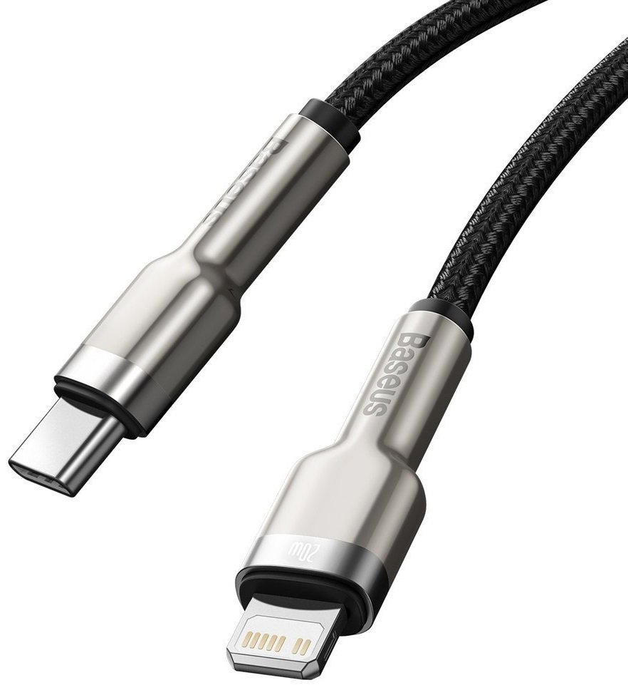 Кабель Baseus Cafule с разъемами Type-C – Lightning предназначен для устройств Apple и поддерживает зарядку мощностью до 27 Вт при подключении к зарядному устройству с PD 30 Вт. Совместим с внешними аккумуляторами, оснащенными портом быстрой зарядки Type-C. Используется для быстрой зарядки iPhone, включая модели серии 14.