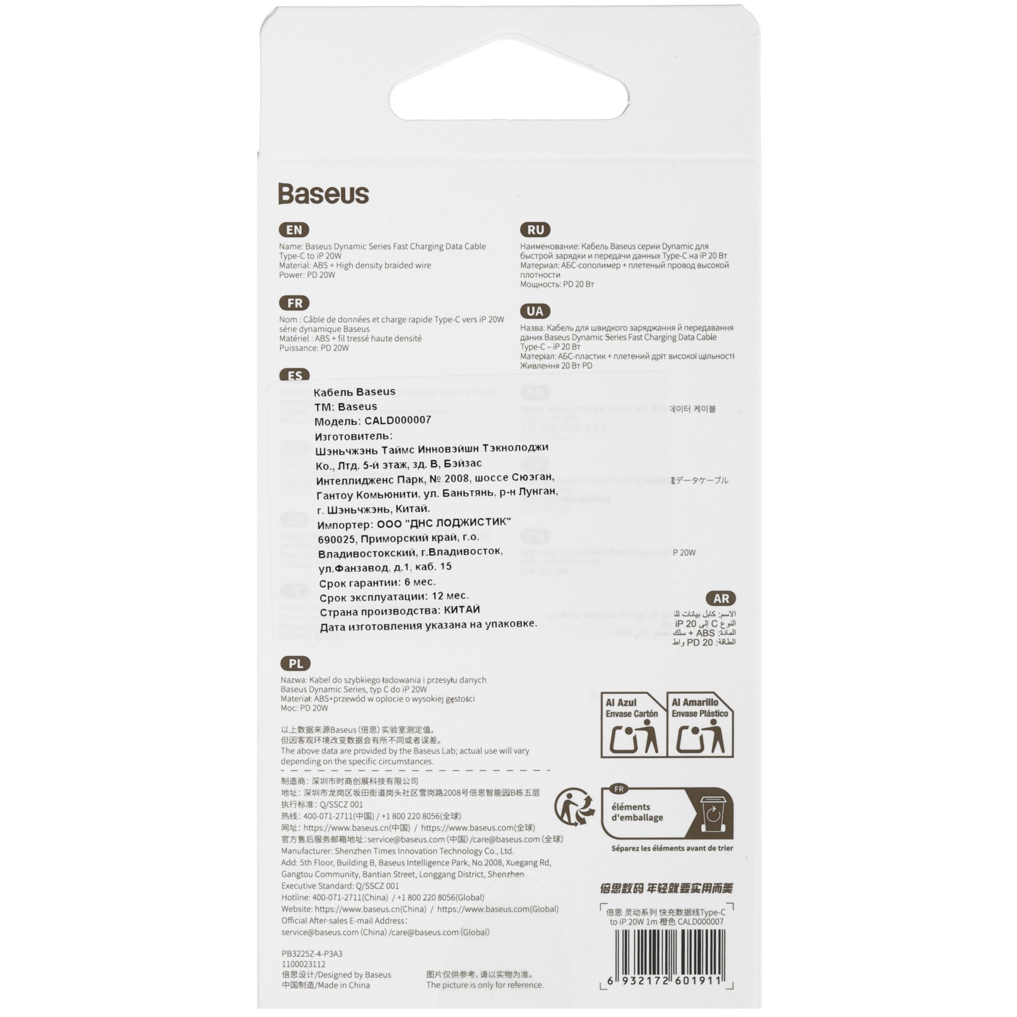 Кабель круглый Baseus Lightning 8-pin - USB Type-C оранжевый предназначен для передачи данных и зарядки аккумуляторов смартфонов и других устройств. Максимальная скорость обмена информацией составляет 60 МБ/с. Кабель пропускает ток до 2.22 А и передает мощность до 20 Вт. Параметры влияют на скорость зарядки.