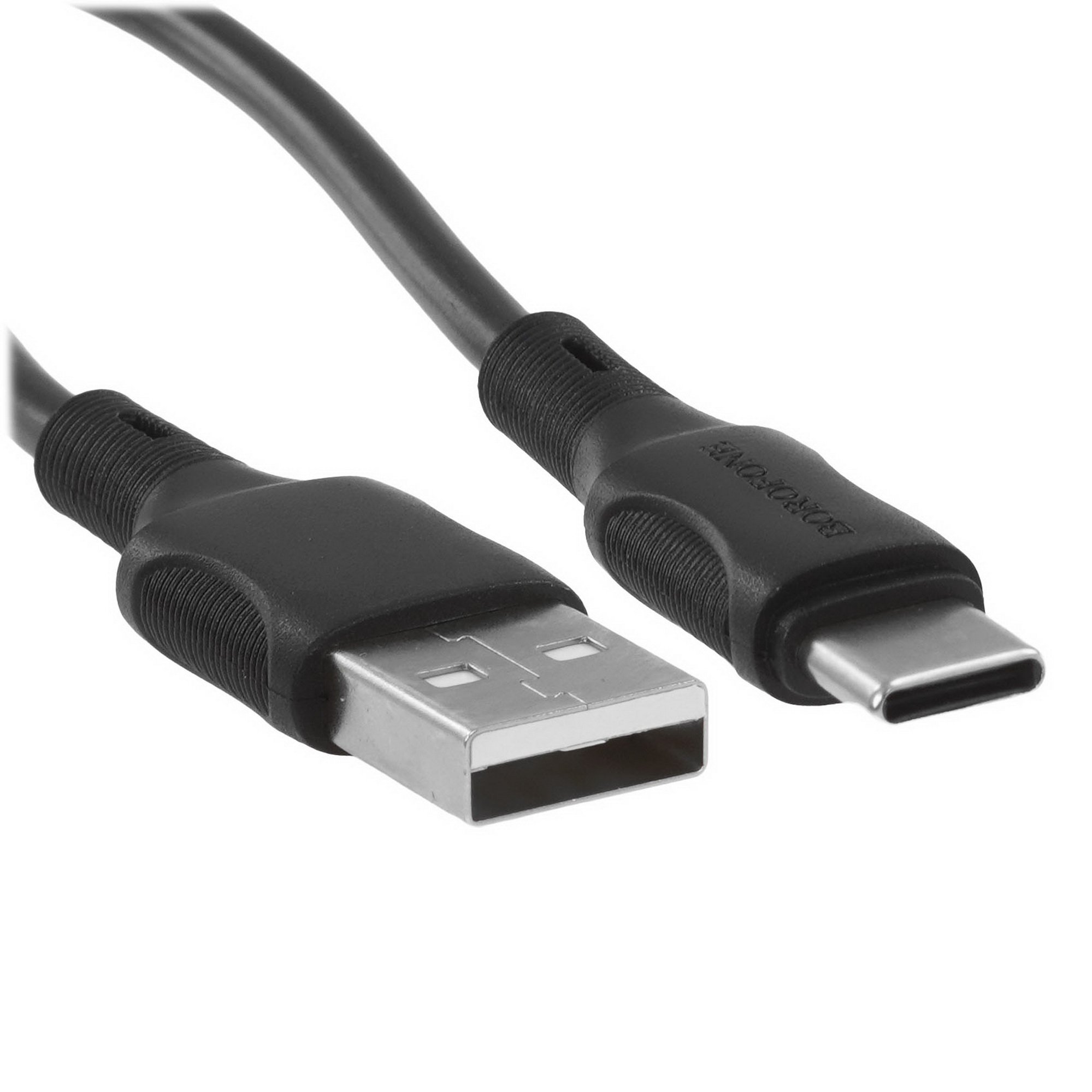 Кабель круглый Borofone USB Type-C - USB 2.0 Type-A черный используется для зарядки аккумуляторов портативных устройств и передачи данных. Максимальная скорость обмена информацией – 60 МБ/с. Пропускной ток изделия – 3 А. Параметр влияет на скорость зарядки.