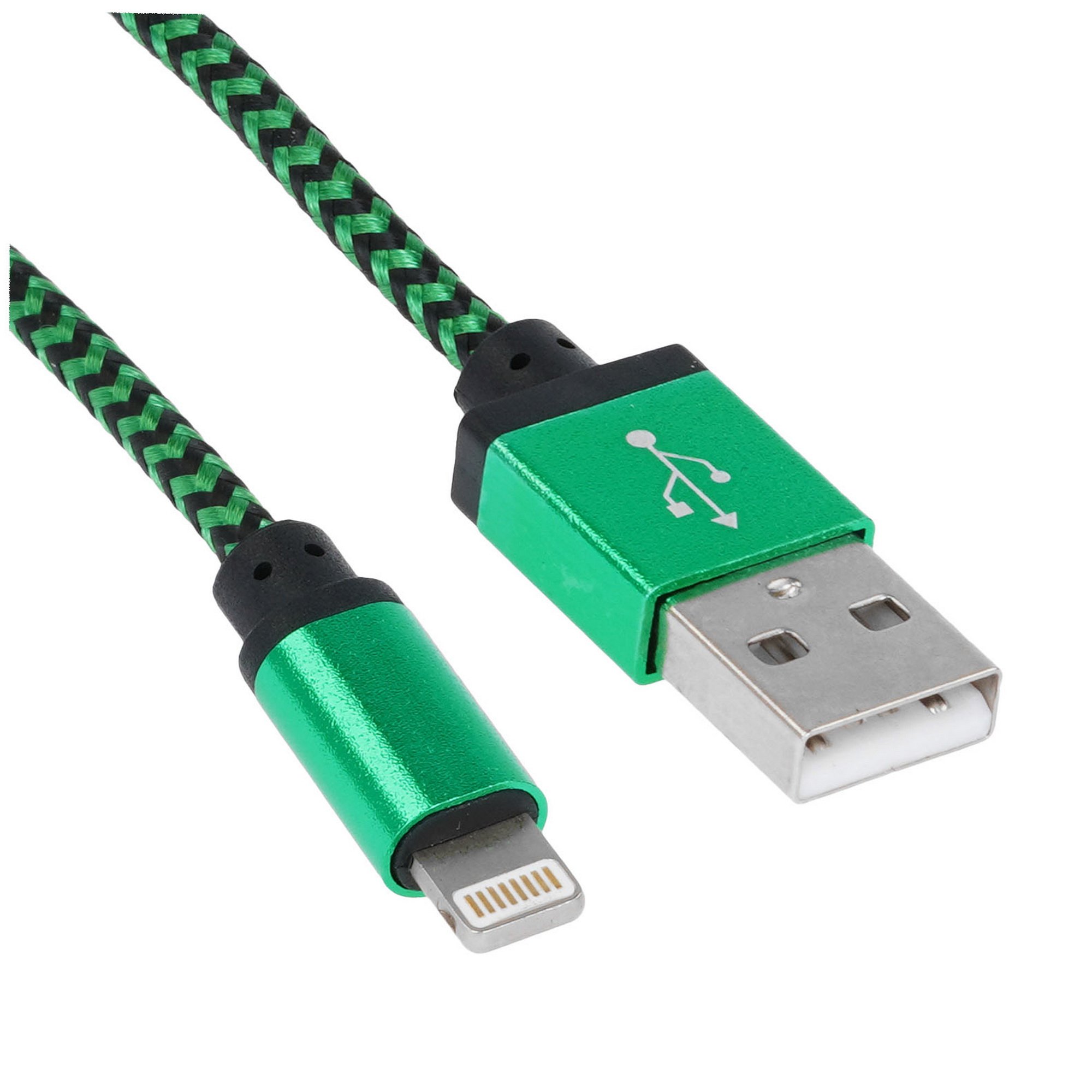Кабель Gembird USB 2.0 Cablexpert CC-ApUSB2gn1m, AM/Lightning 8P, 1м, нейлоновая оплетка, алюминиевые разъемы, зеленый, пакет