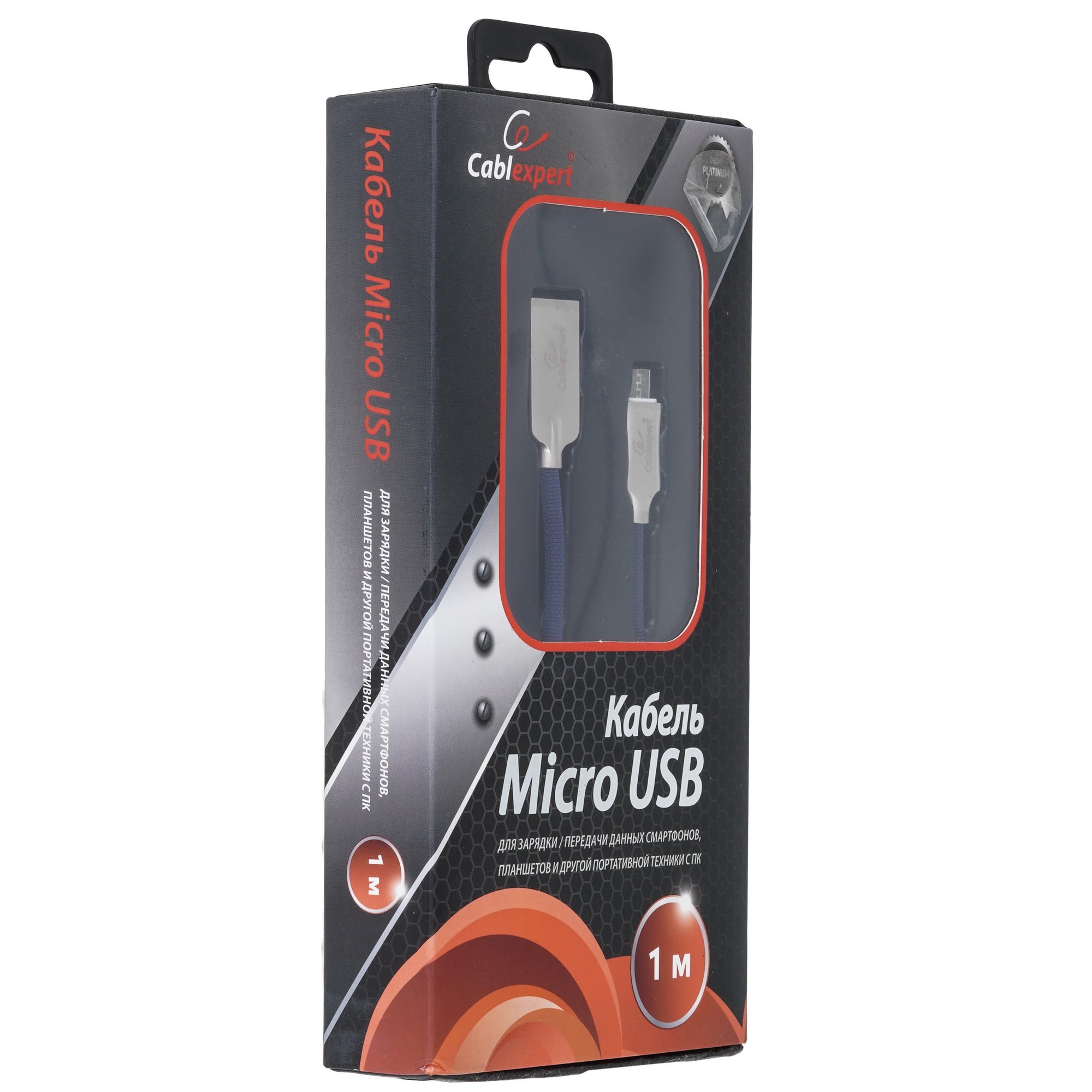 Кабель USB2.0 Cablexpert CC-P-mUSB02Bl-1M, AM/microB, серия Platinum, длина 1м, синий, блистер