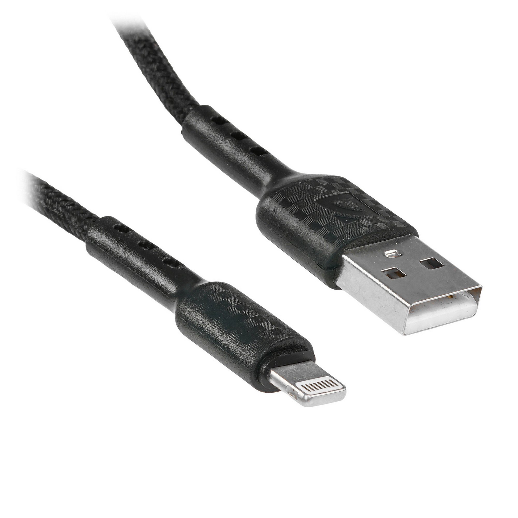 Кабель Defender F181, USB 2.0 (AM) - Apple Lightning (M), 1метр, 2.4А, нейлоновая оплетка, черный.
