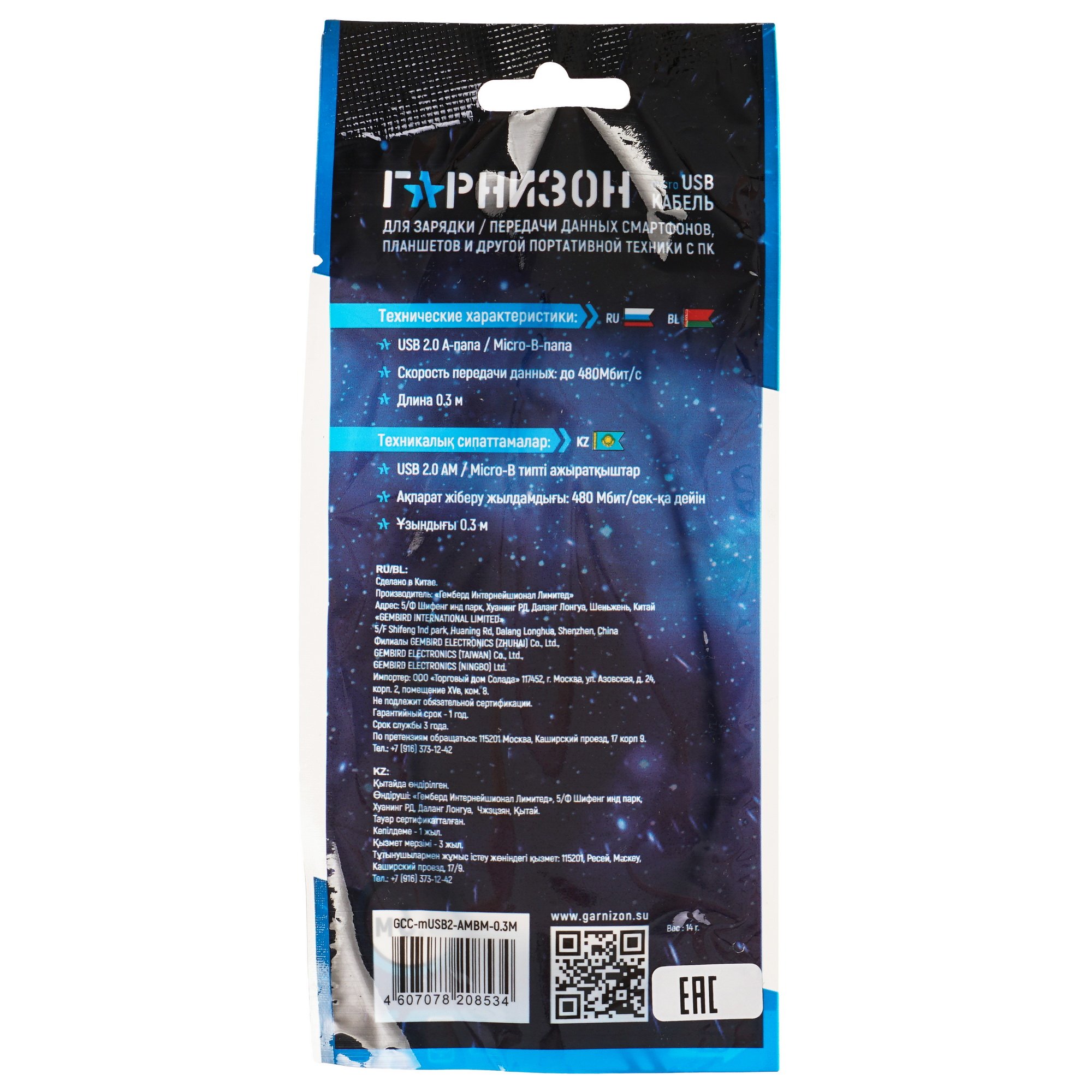 Кабель USB 2.0 Pro Гарнизон GCC-mUSB2-AMBM-0.3M, AM/microBM 5P, 0.3м, пакет