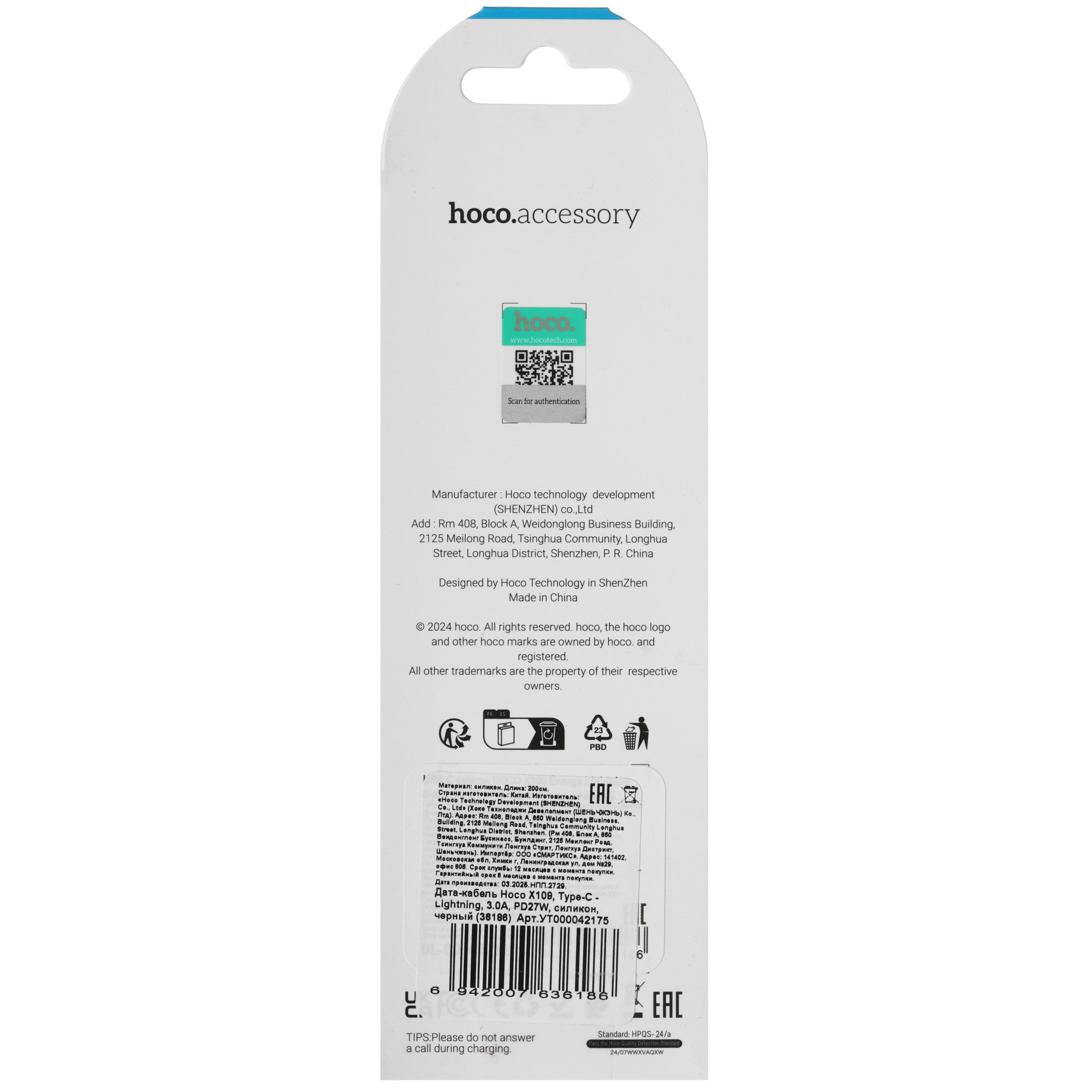 Кабель круглый Hoco Lightning 8-pin - USB 2.0 Type-A черный принесет пользу владельцам смартфонов и других портативных устройств. Изделие рассчитано на зарядку аккумулятора и передачу данных. Скорость обмена информацией ограничена 60 МБ/с. Максимальная мощность зарядки – 27 Вт.