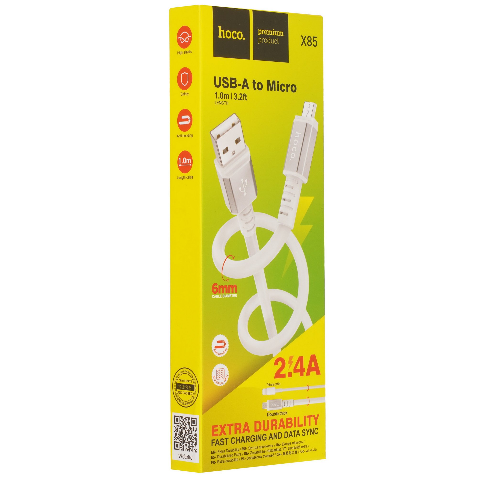 Кабель круглый Hoco micro USB - USB 2.0 Type-A обладает длиной 1 м. Защиту изделия от повреждений обеспечивает оплетка из TPE.