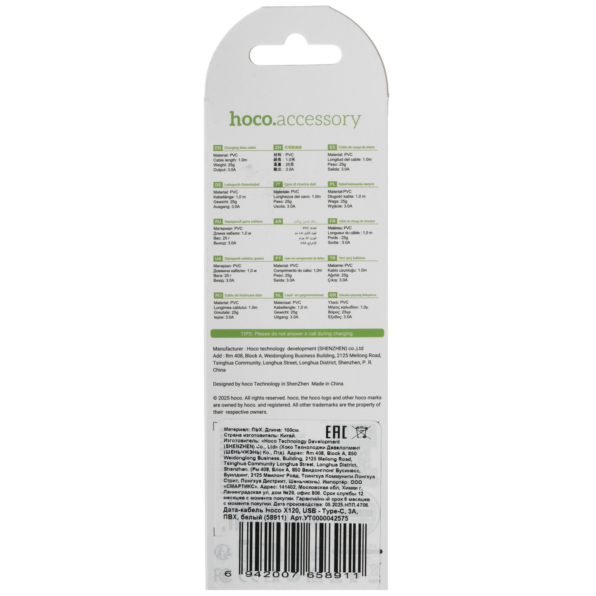 Дата-кабель HOCO (6942007658911) X120a, для Type-C, 1 м, белый