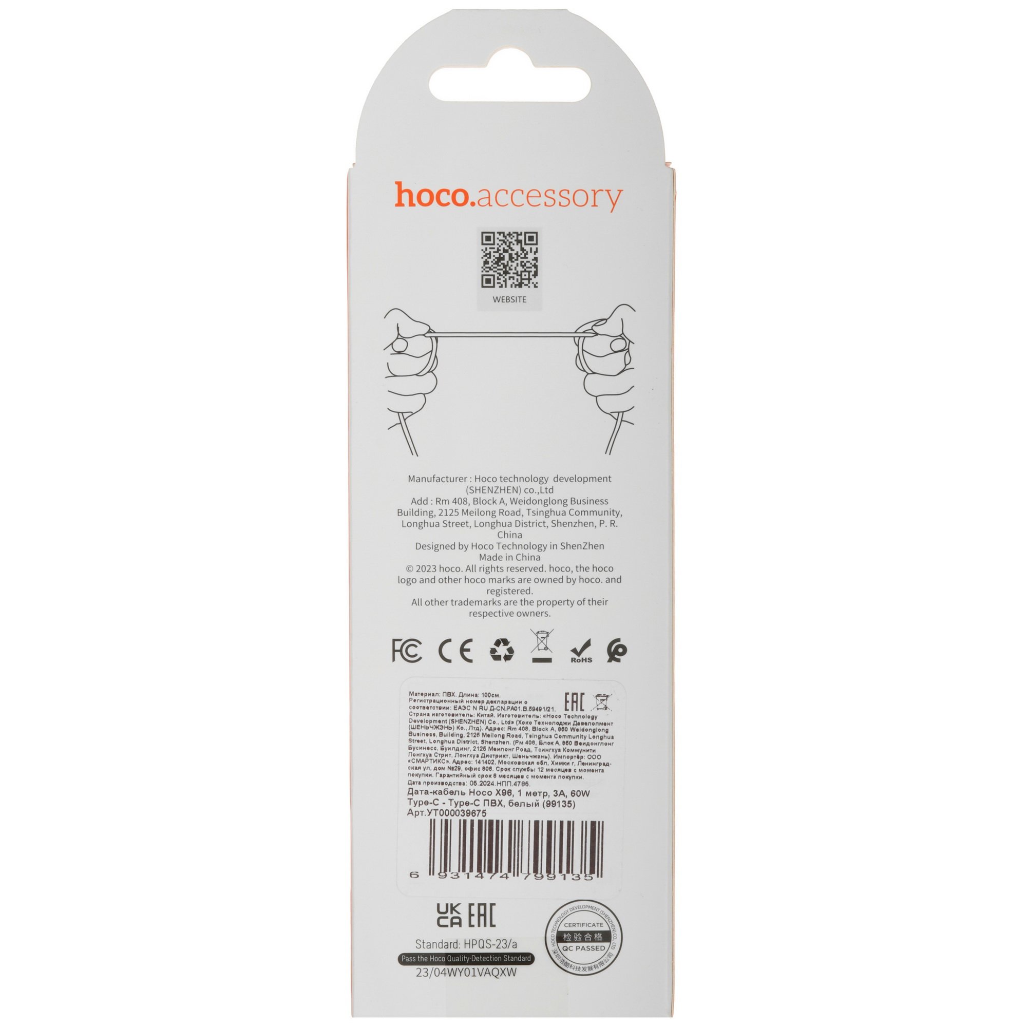 Кабель HOCO (6931474799135) X96aa 60WUSB 3.0A Type-C 1,0m белый