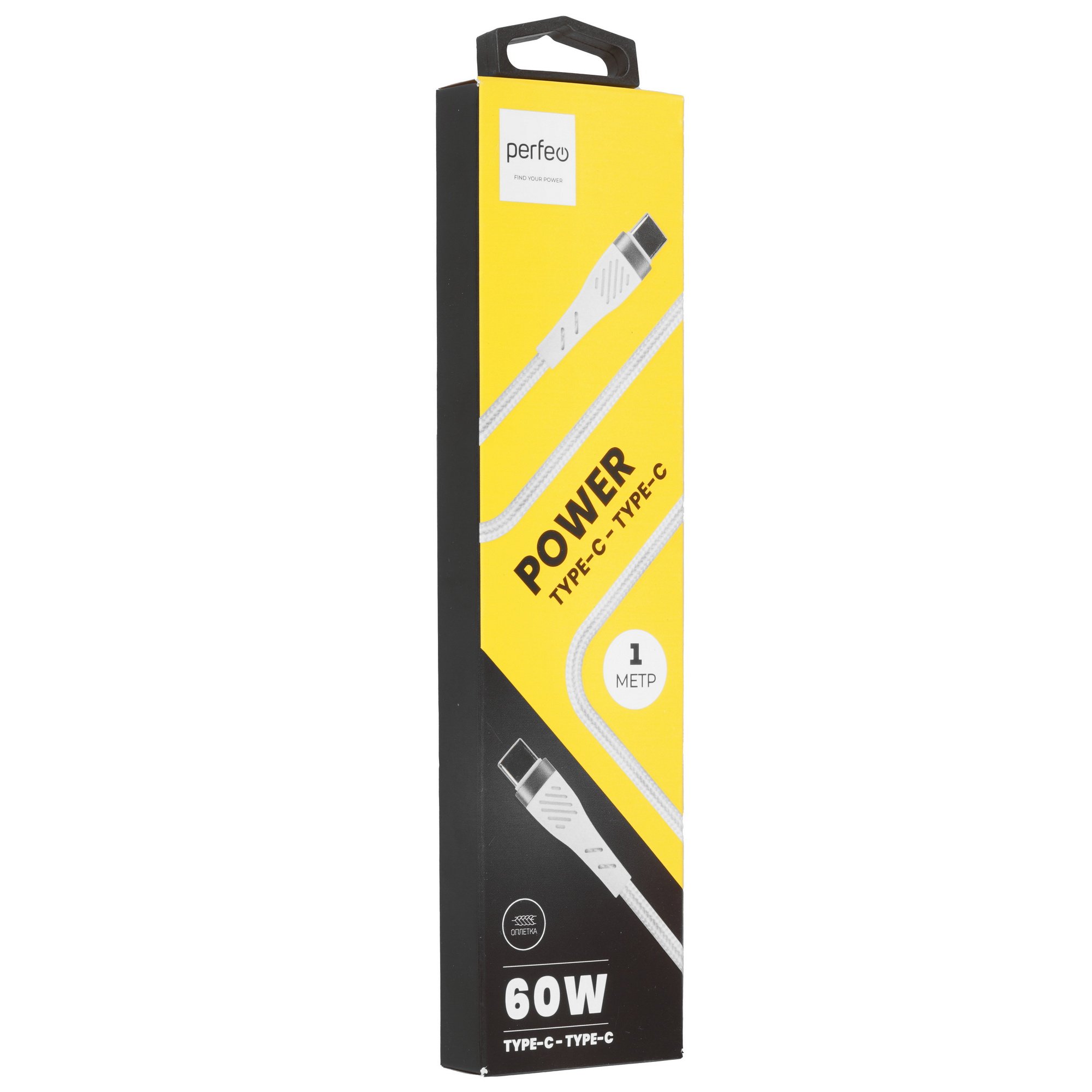 Кабель круглый USB Type-C - USB Type-C имеет длину 1 м. Защиту изделия от механических воздействий обеспечивает текстильная оплетка.
