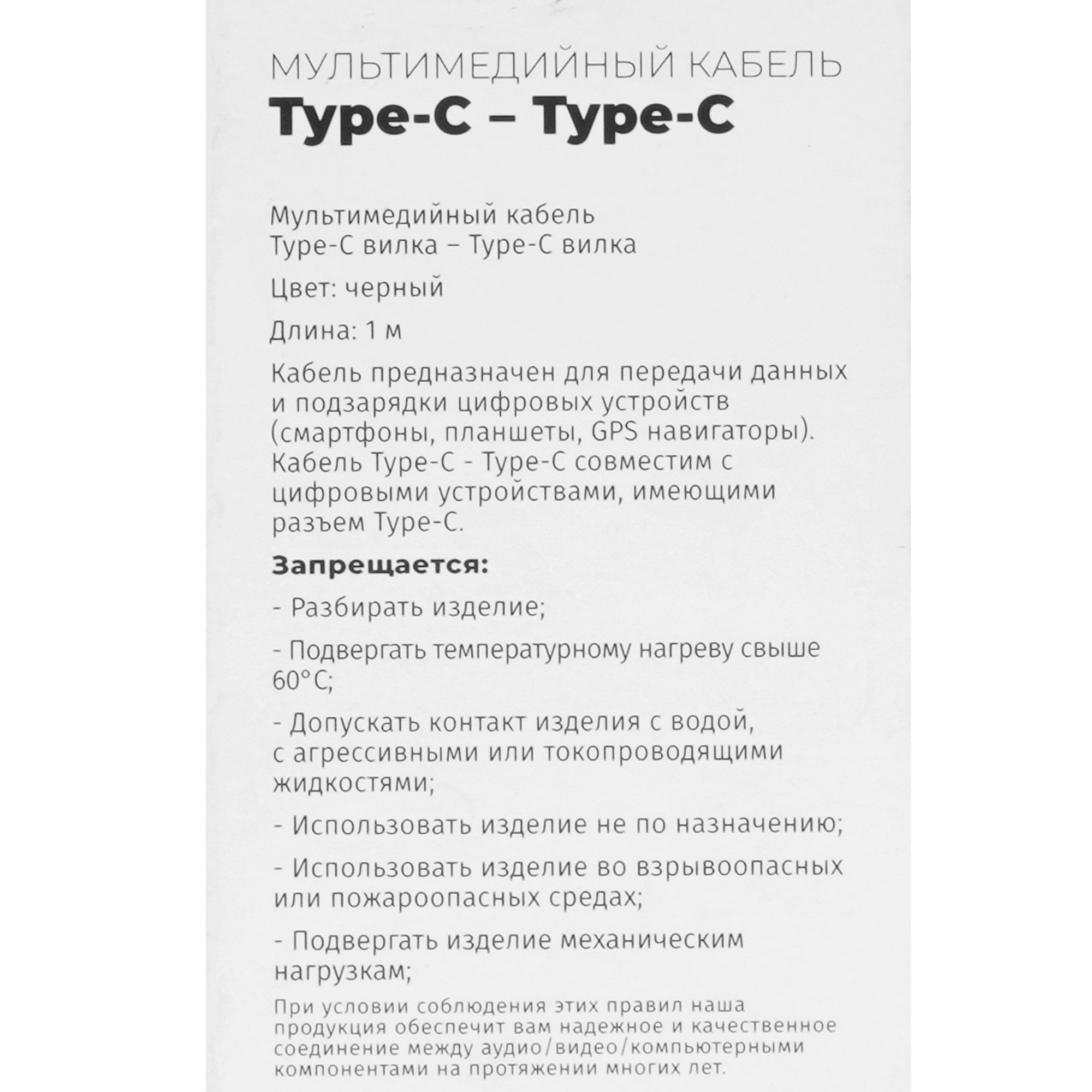 Кабель круглый USB Type-C - USB Type-C имеет длину 1 м. Защиту изделия от механических воздействий обеспечивает нейлоновая оплетка.
