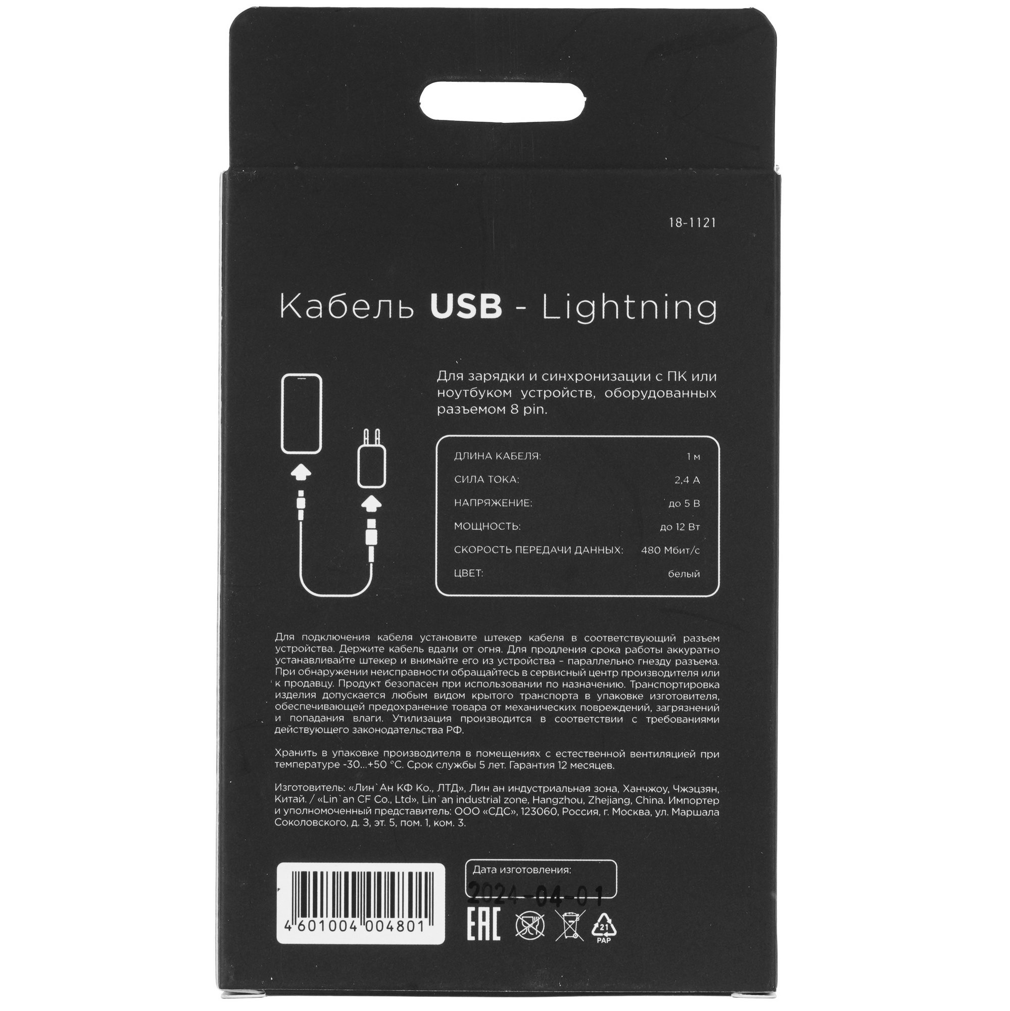 Кабель представляет собой удобный и практичный аксессуар для зарядки мобильных устройств Apple, а также их синхронизации с ПК или ноутбуком. Кабель оснащен двумя разъемами: на одном конце располагается разъем USB-A, а на другом – разъем Lightning.