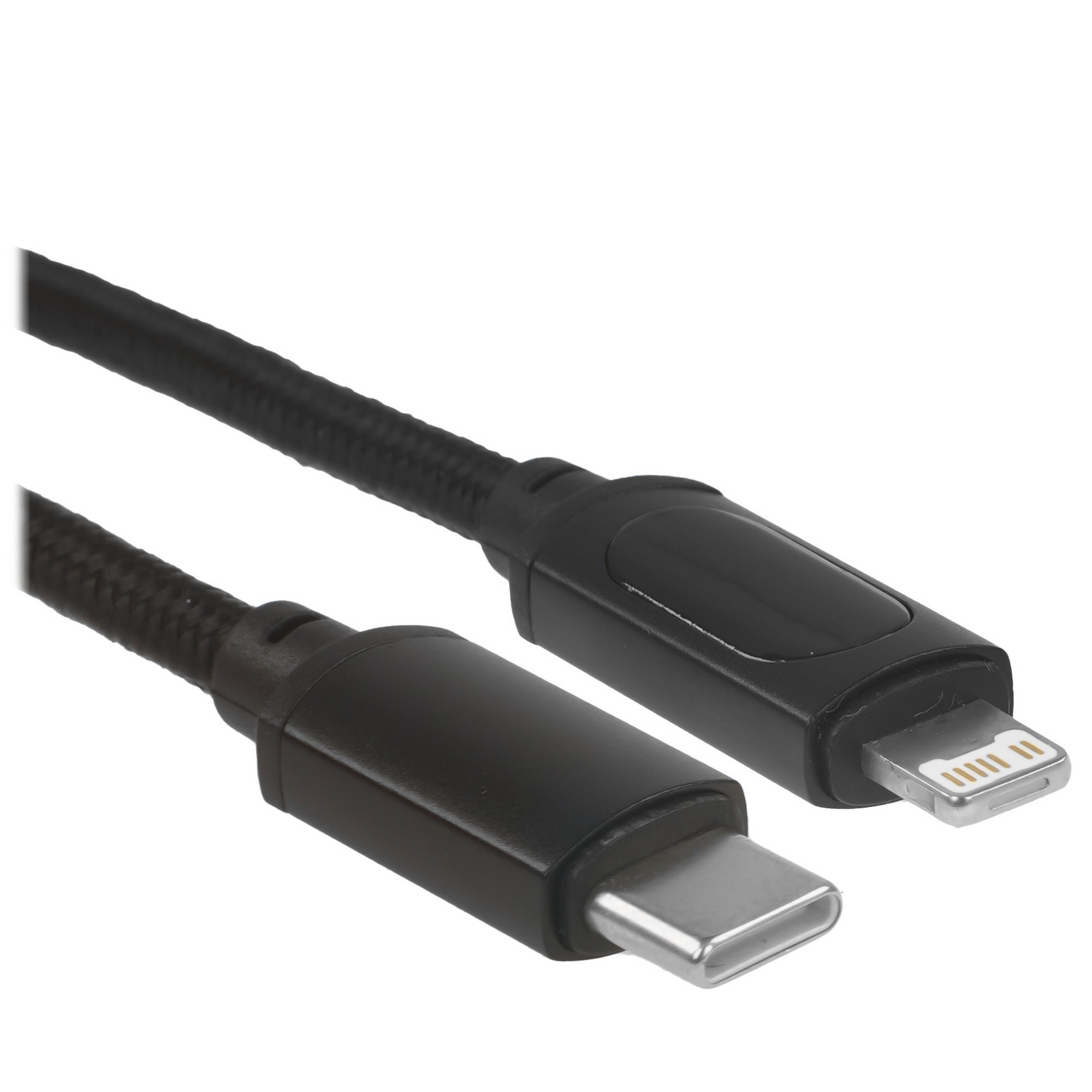 Кабель Rexant Type-C – Lightning для Apple, 3А, 1м, в черной нейлоновой оплетке, с LED-дисплеем