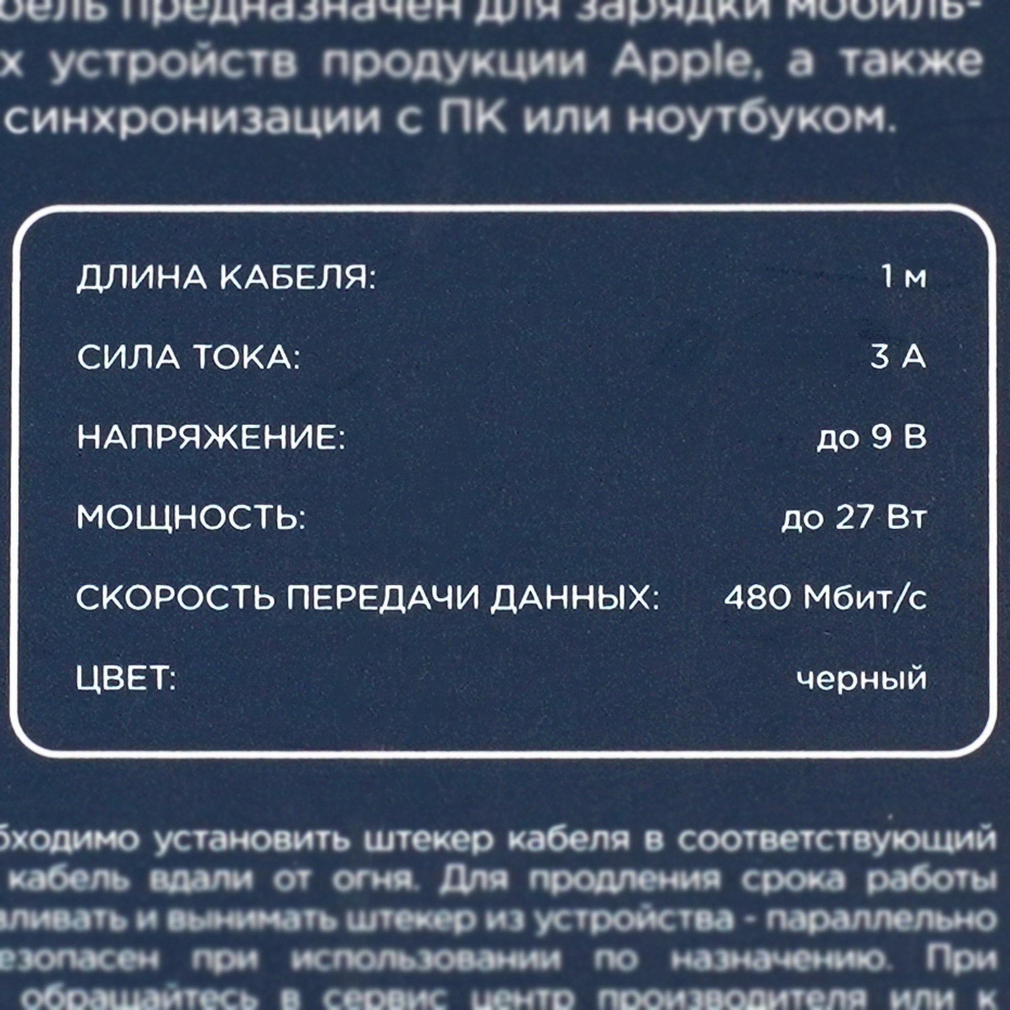 Длина кабеля равна 1 м, что позволяет заряжать устройство и передавать данные на комфортном расстоянии для пользователя.