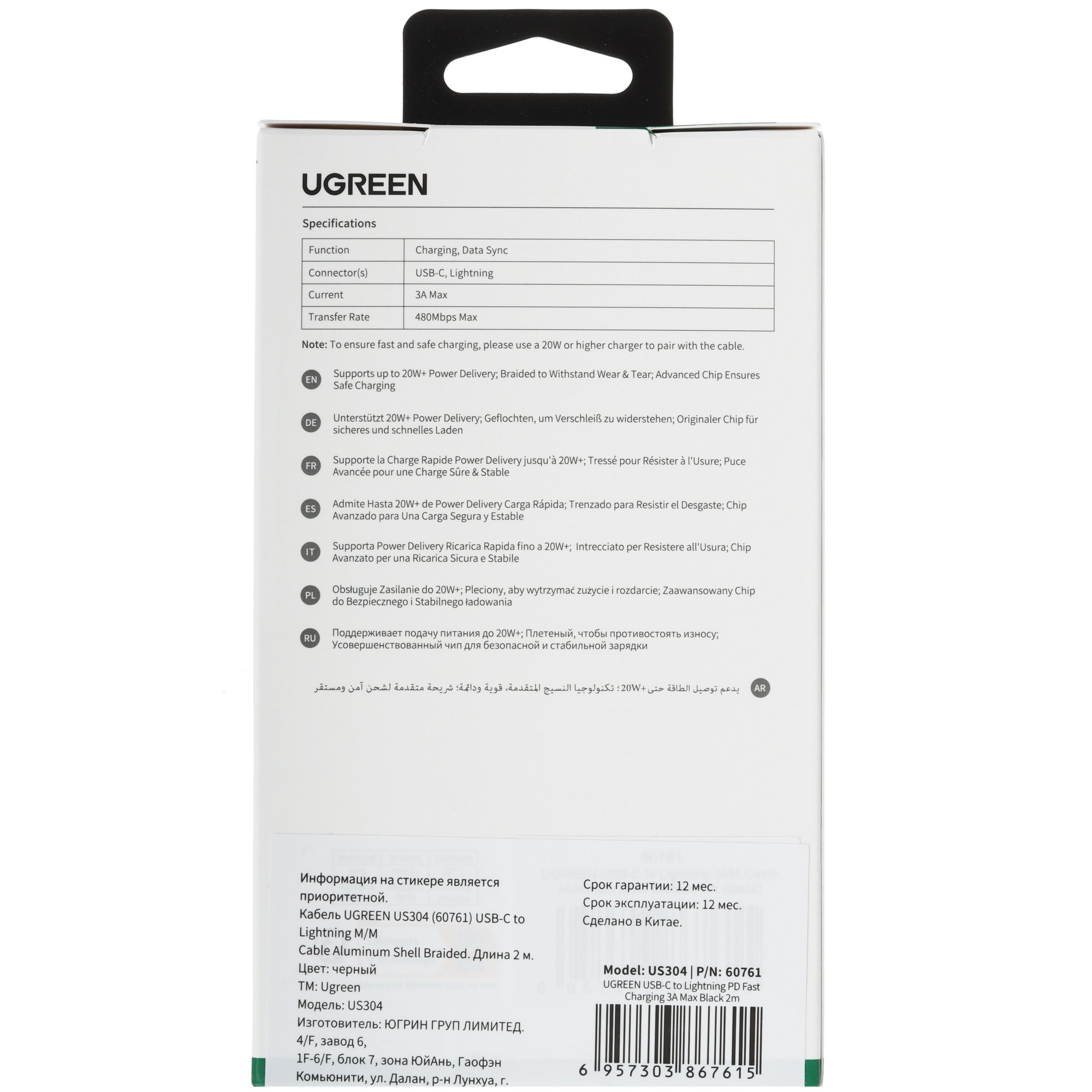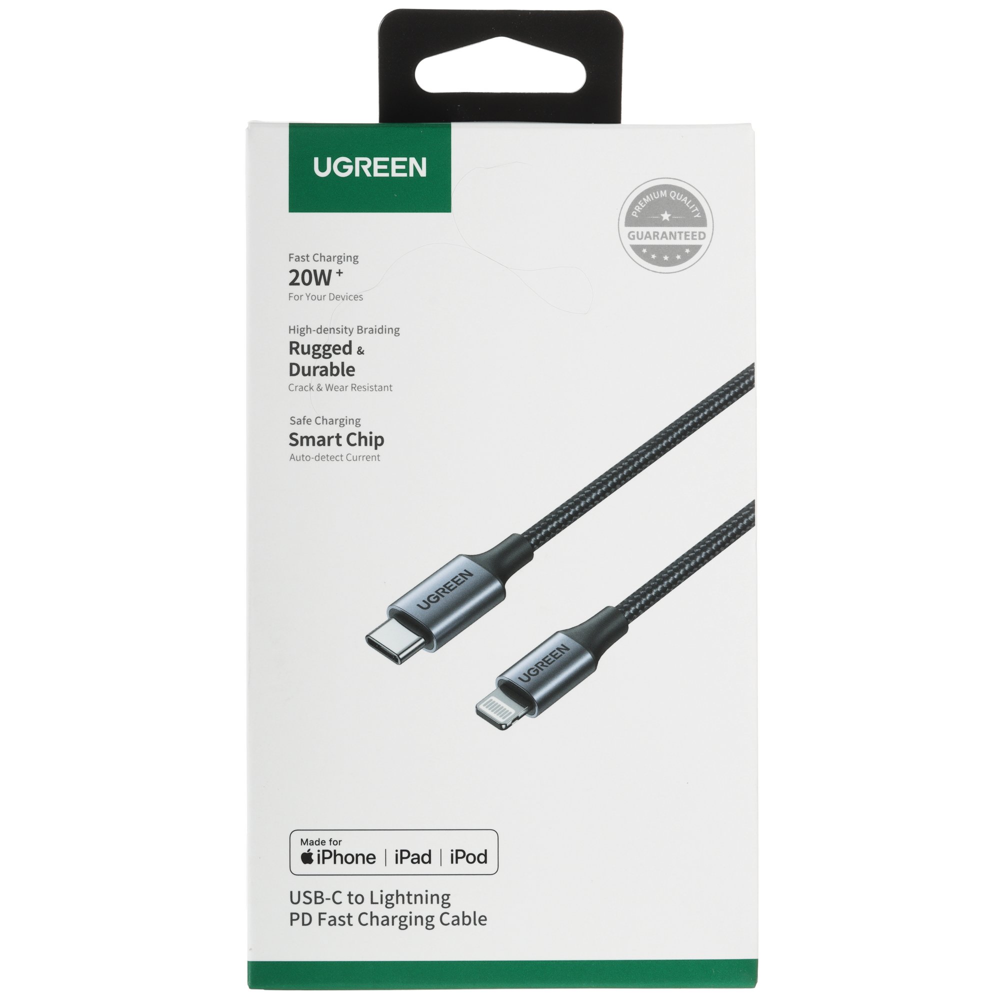 Длина кабеля круглого Ugreen Lightning 8-pin MFI - USB Type-C – 2 м. Защиту аксессуара от механических воздействий обеспечивает оплетка из нейлона. Кабель поддерживает стандарт быстрой зарядки Power Delivery.