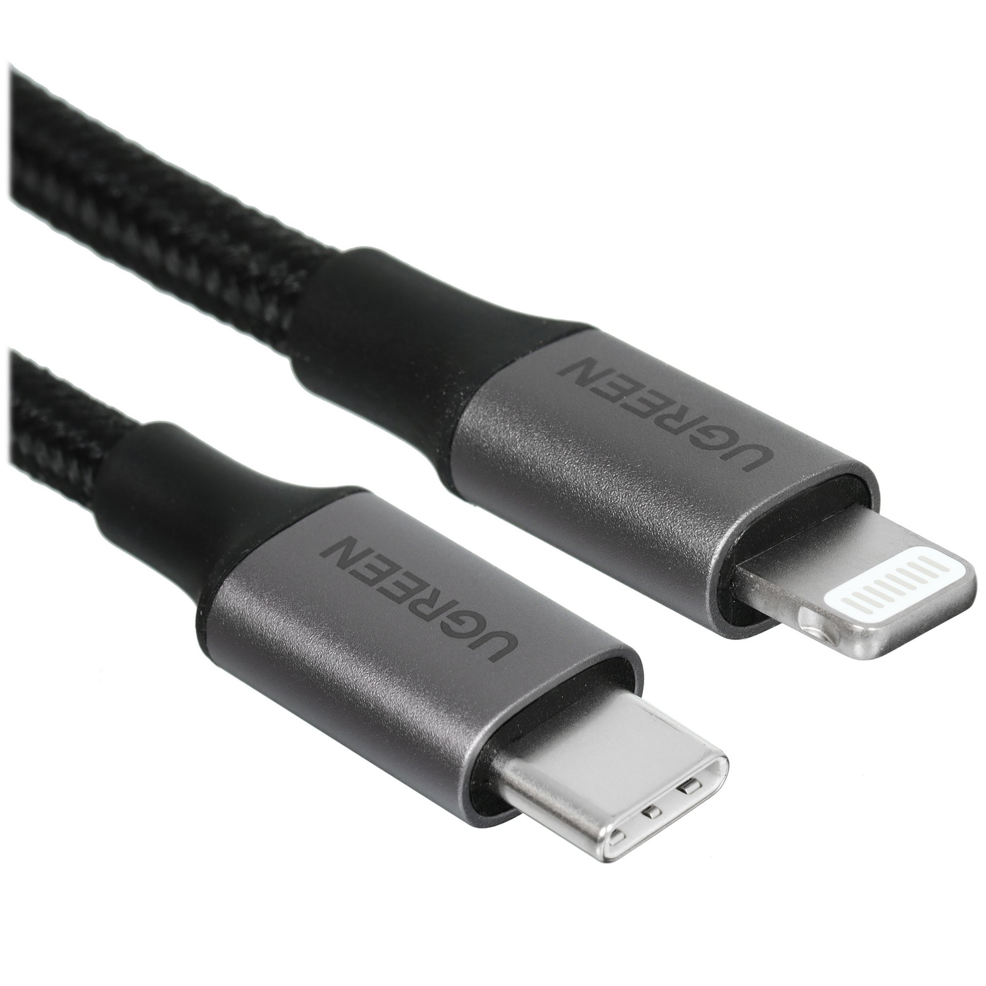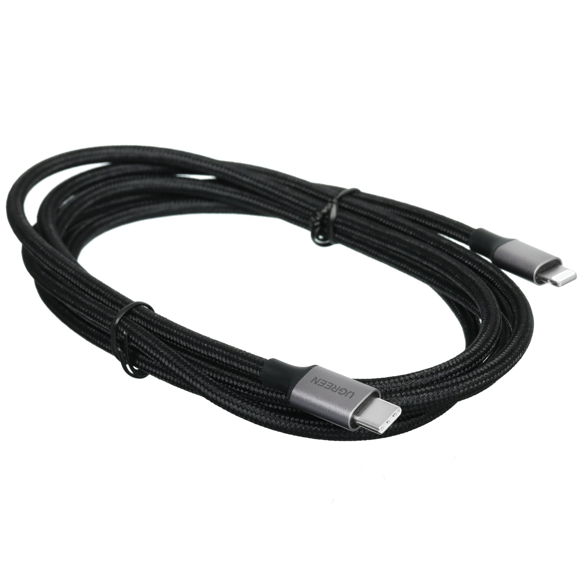 Кабель круглый Ugreen Lightning 8-pin MFI - USB Type-C черный рассчитан на передачу данных со скоростью до 60 МБ/с и зарядку аккумуляторов портативных устройств. Пропускной ток кабеля – 3 А. Параметр влияет на скорость зарядки.