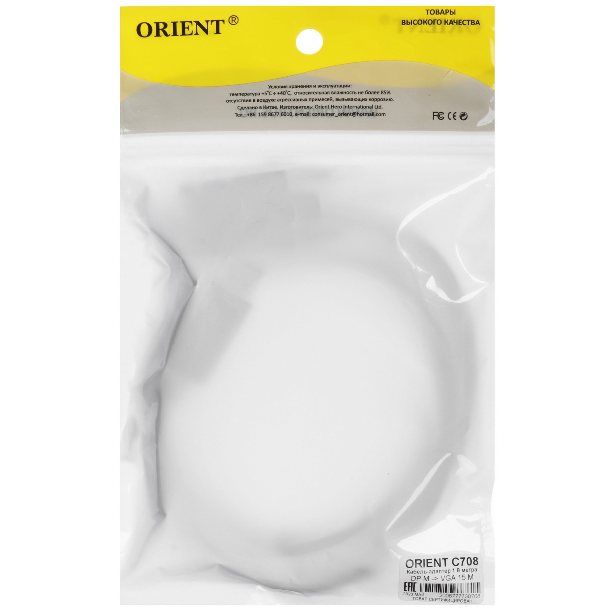 Кабель однонаправленный Orient DisplayPort - VGA, 1.8 м черного цвета предназначен для соединения периферийных устройств с разъемами DisplayPort - VGA друг к другу. Модель способна передавать однонаправленный цифровой/аналоговый сигнал. Длина кабеля равна 1.8 м.