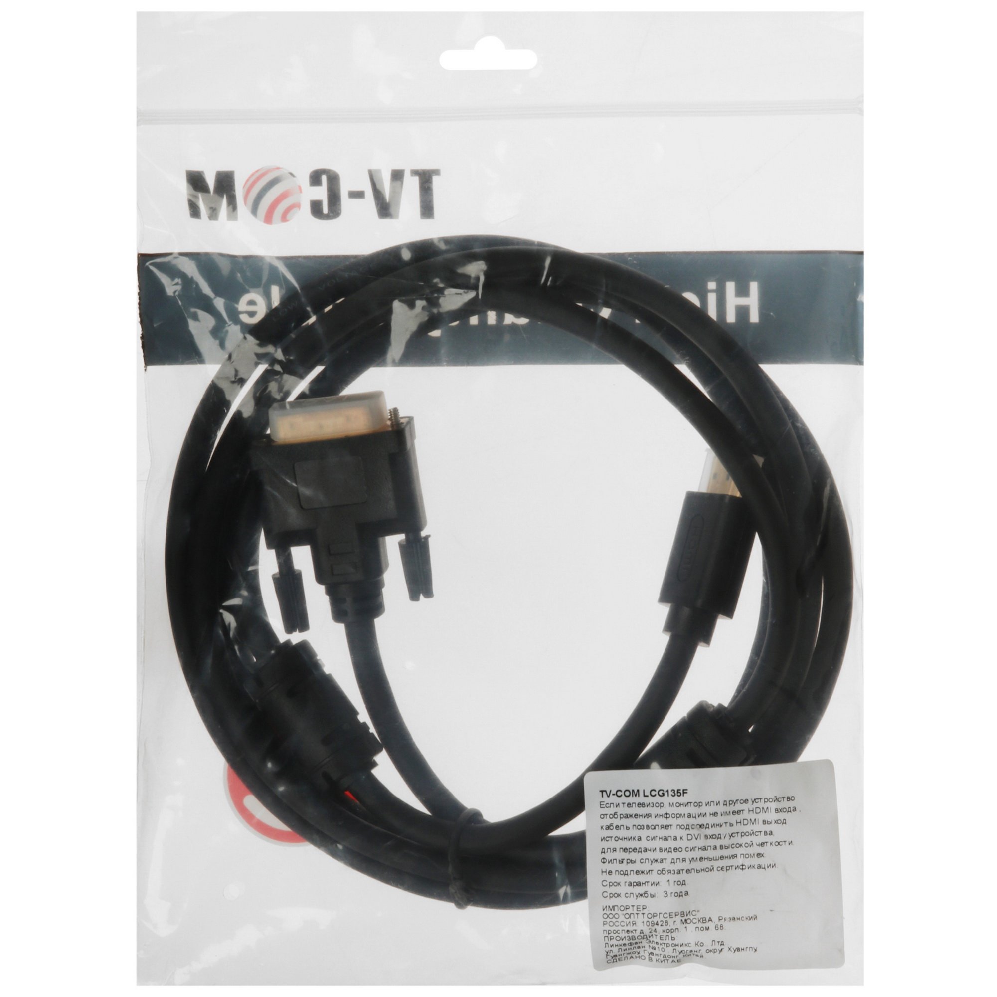 Кабель однонаправленный TV-COM HDMI - DVI-D с позолоченными коннекторами предназначен для передачи цифрового видеосигнала. Версии разъемов – DVI-D Dual Link и HDMI 1.4.