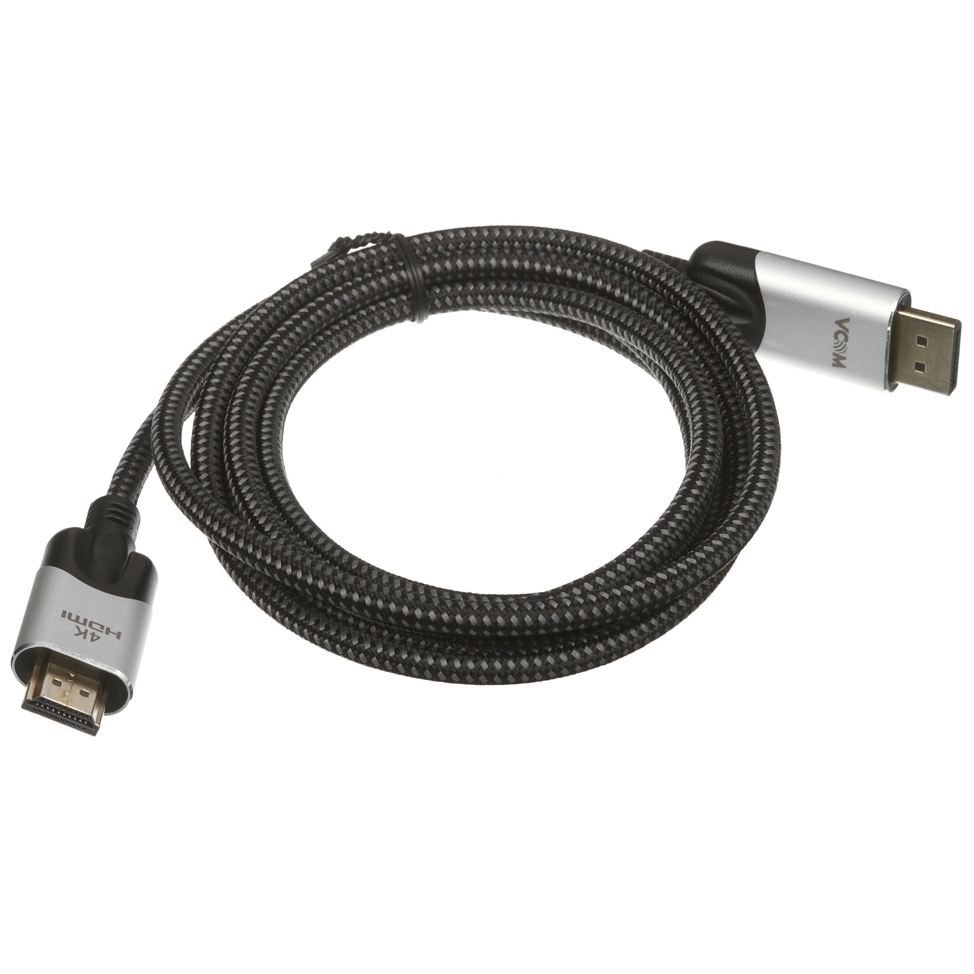 VCOM DisplayPort - HDMI выполнен в черно-сером цвете. При его изготовлении использовалась текстильная изоляция. Производитель применяет только проверенные материалы, которые долго не изнашиваются. Исключается повреждение оплетки, она на длительный период сохранит целостность.