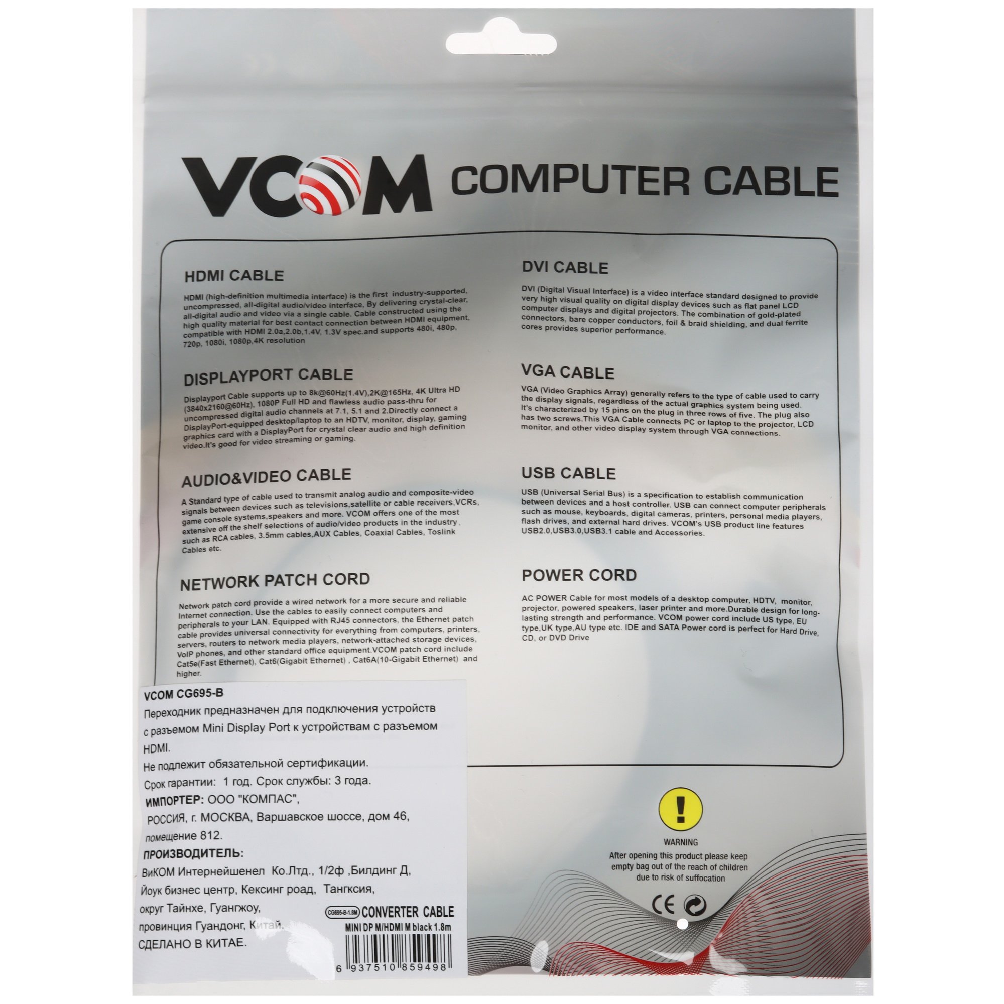 Кабель-переходник Mini DP M to HDMI M 1,5 м VCOM (CG695)