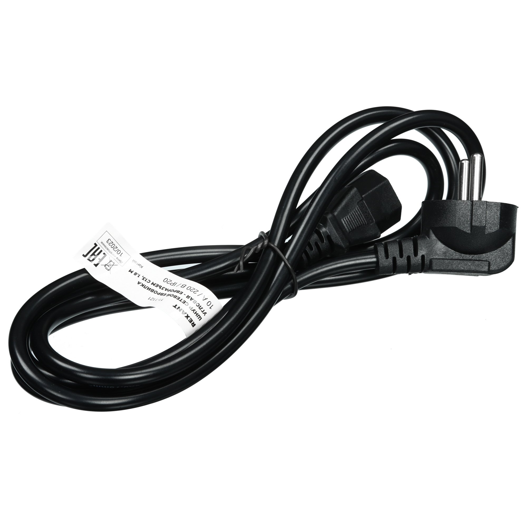 Шнур сетевой Rexant евровилка угловая - евроразъем С13, кабель 3x0,75 мм², длина 1,8 метра (PE пакет)