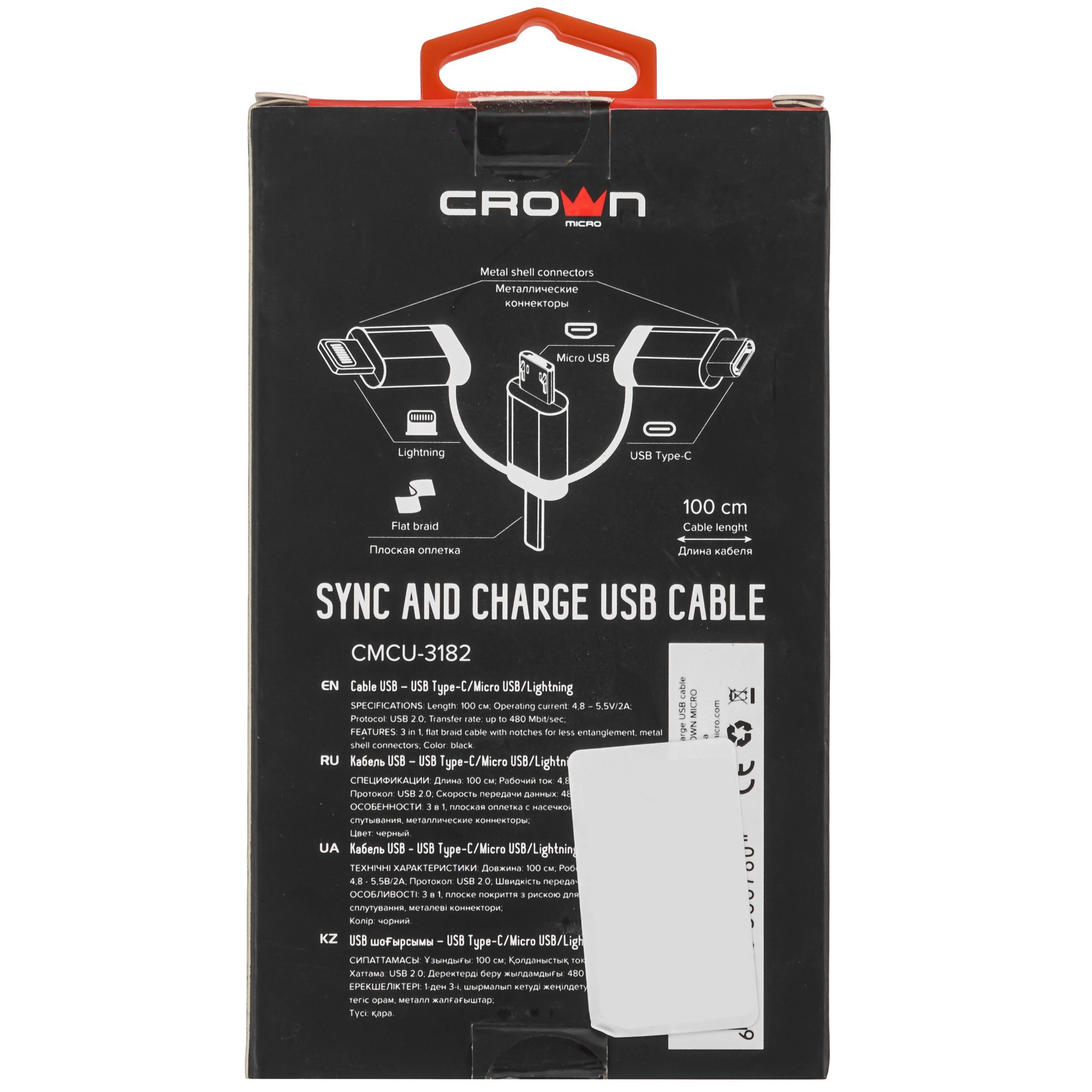 Кабель Crown USB - microUSB/USB Type-C/Lightning CMCU-3182 черный