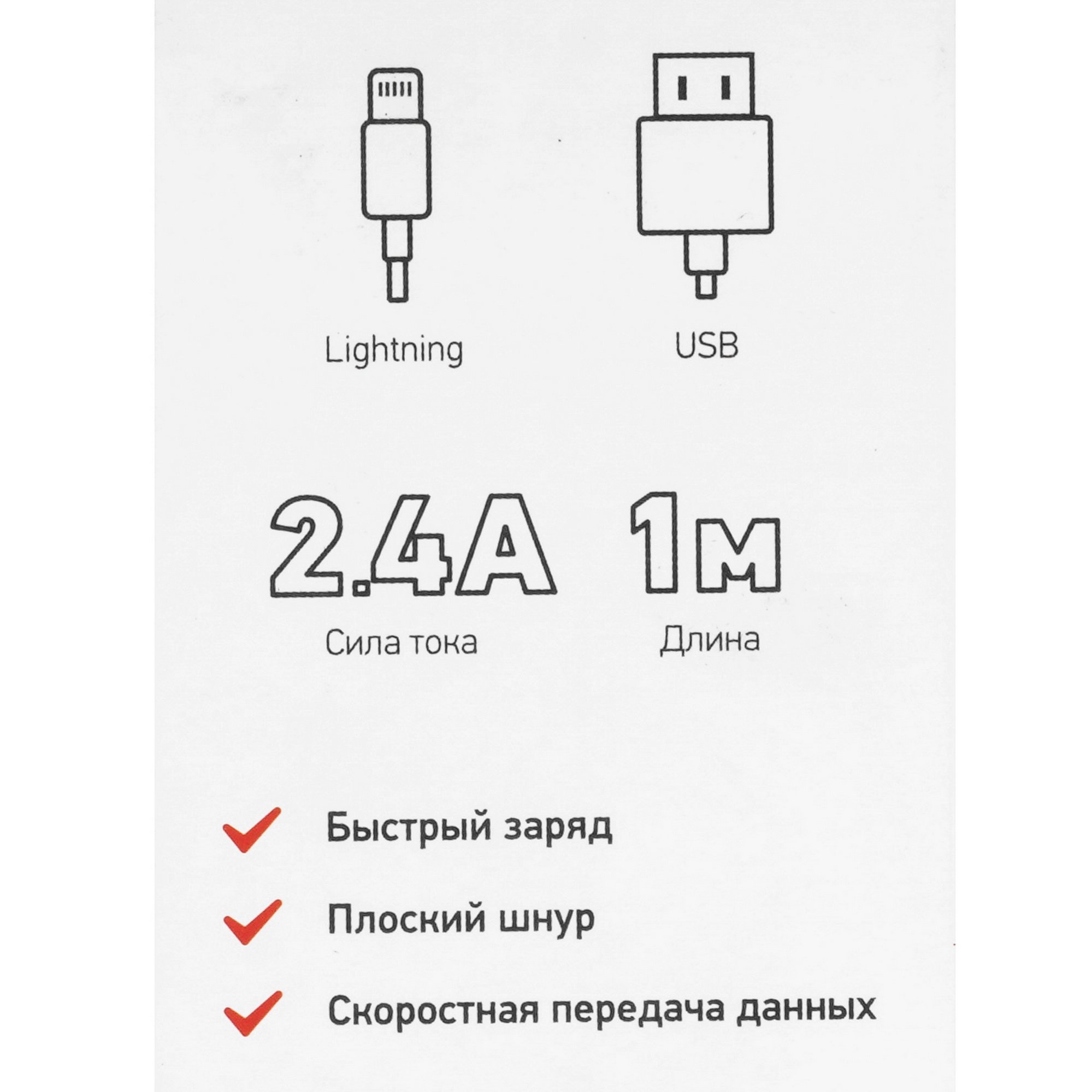 Кабель плоский REXANT Lightning 8-pin - USB 2.0 Type-A белого цвета имеет длину 1 метр, напряжение 5 Вольт и ток 2.4 Ампера. Максимальная скорости передачи данных 480 Мбит/сек позволяет скачать один трек за 5 секунд. Металлический корпус разъема и нейлоновая оплетка защищают кабель REXANT Lightning 8-pin - USB 2.0 Type-A от повреждений и увеличивают срок службы.
