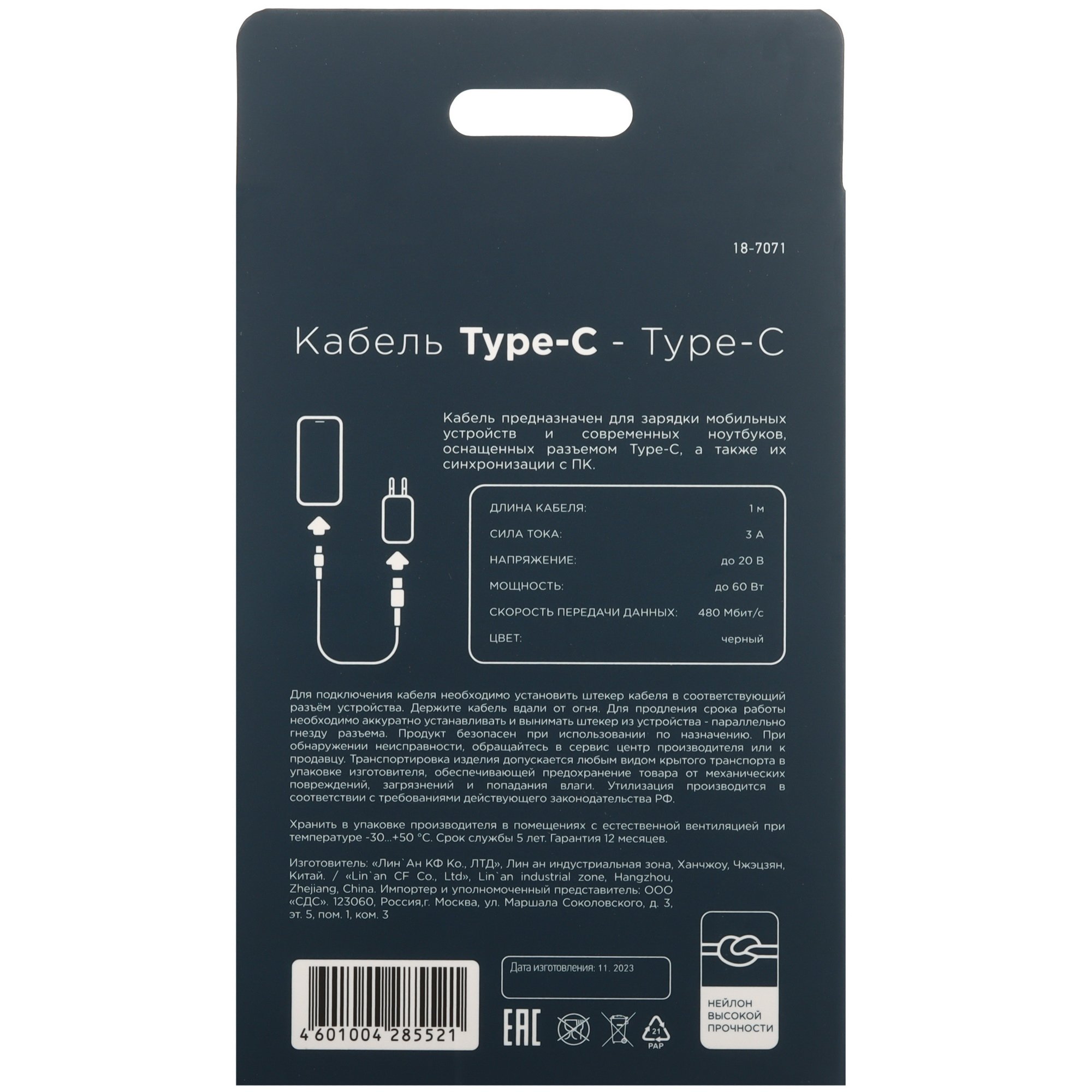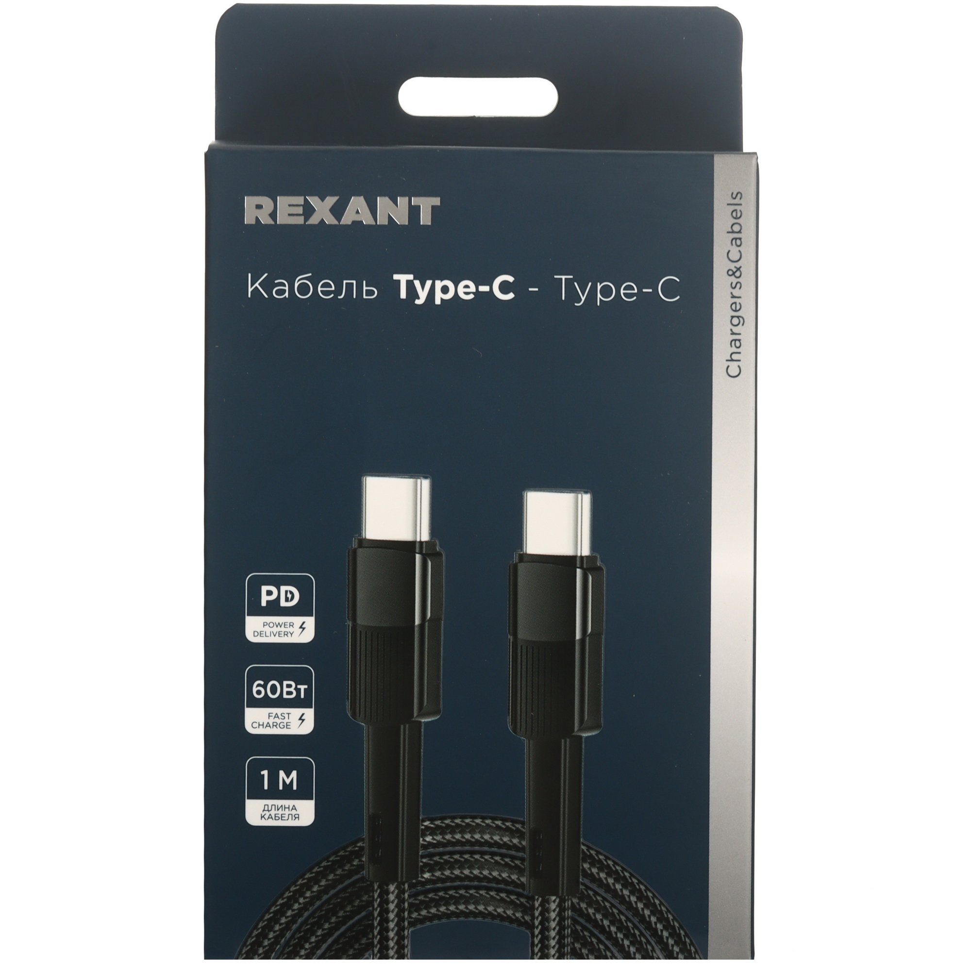 Кабель круглый REXANT USB Type-C - USB Type-C имеет длину 1 м. Аксессуар защищен от механических повреждений оплеткой из нейлона.
