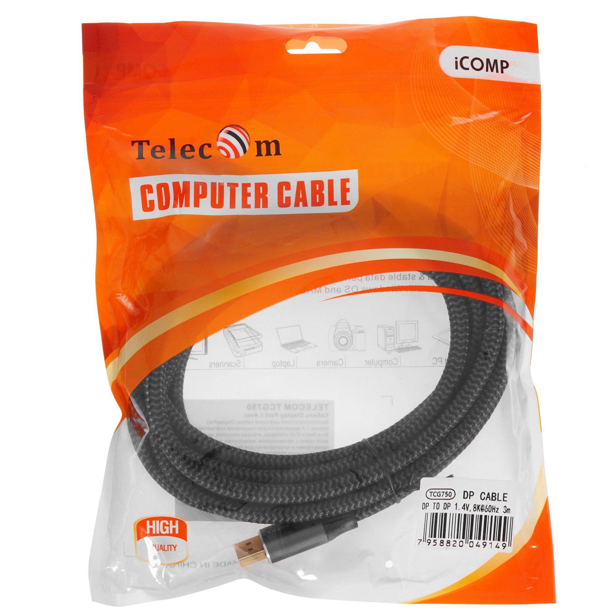Кабель соединительный DP-DP 1.4V 8K@60Hz 3м, Telecom Pro <TCG750-3M>