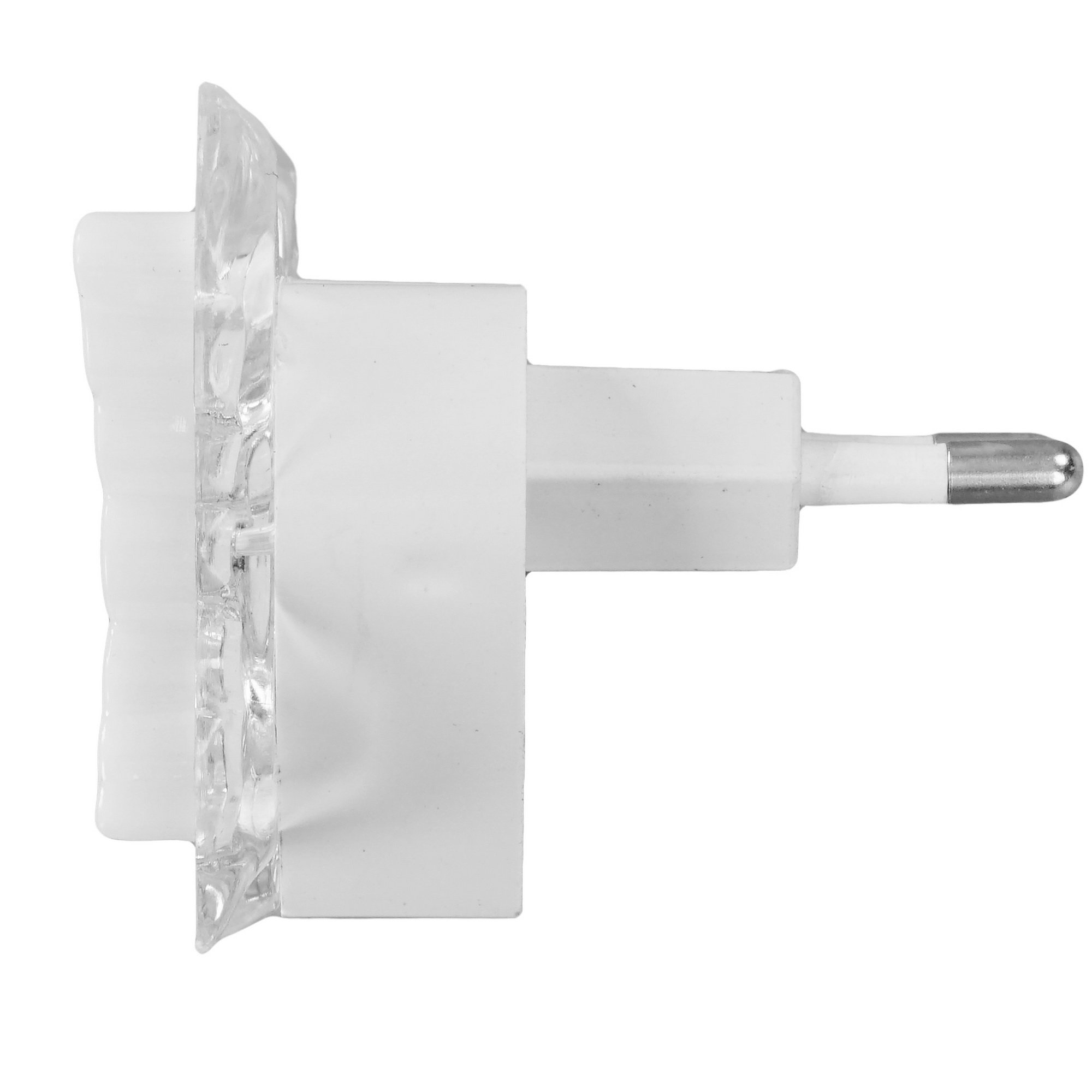 Ночник Camelion NL-259 с корпусом из белого пластика устанавливается прямо в розетку бытовой электросети и обеспечивает локальную подсветку гостиной, спальной или детской комнаты. На корпусе настенного осветительного прибора находится вилка для подключения к сети.