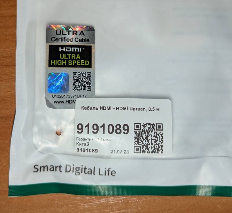 Длина кабеля Ugreen HDMI - HDMI составляет 3 м. Поддерживается статический HDR.