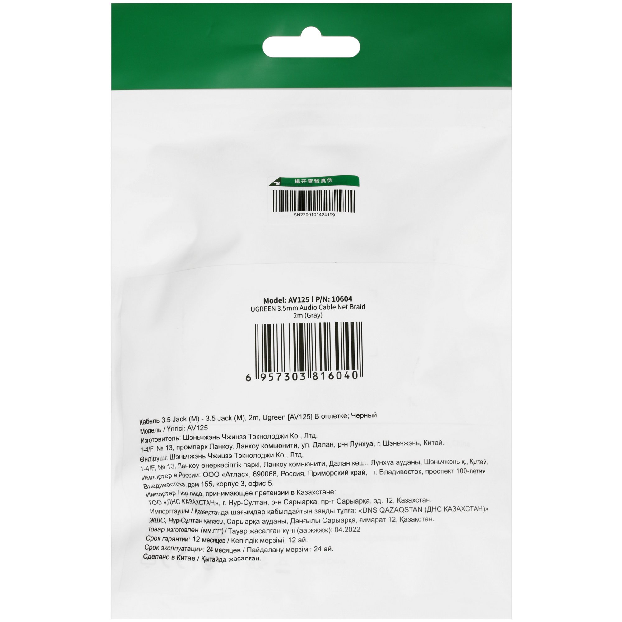 Кабель Ugreen 3.5 mm jack - 3.5 mm jack длиной 2 м можно вывести в удобное для работы место, скрыв лишнюю часть за шкафом или стойкой. Плотная оплетка защищает от перекручивания и перегибов. Позолоченные контакты защищены от окисления и быстрого износа.