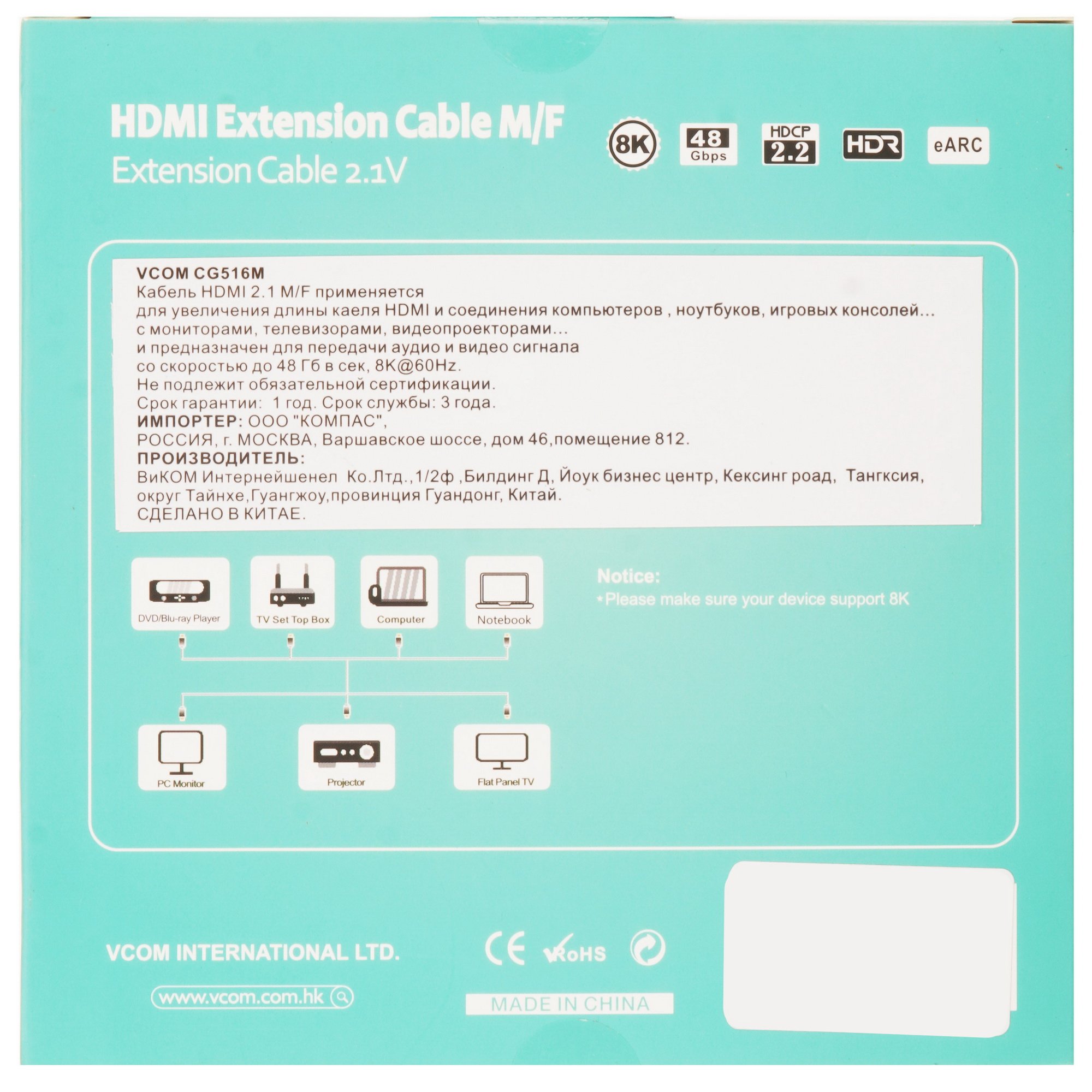 Кабель удлинительный HDMI 2.1v, 8K@60Hz, 1 м VCOM <CG516M-1.0>
