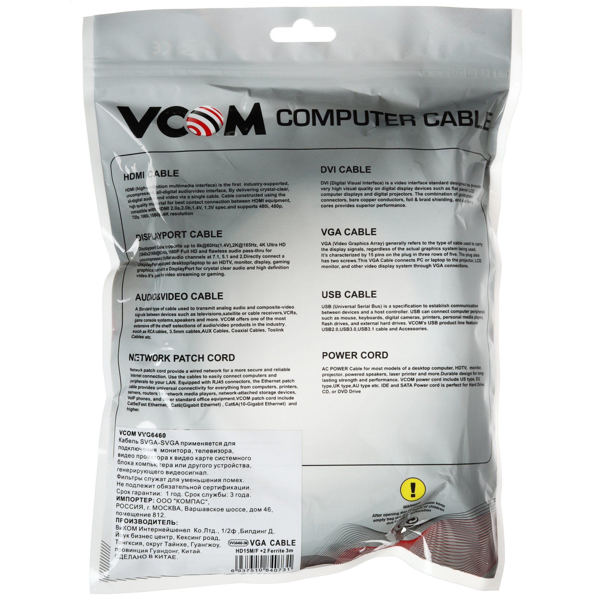 Кабель удлинительный SVGA15M-SVGA15F служит для увеличения длины штатного кабеля подключения монитора, телевизора, видео проектора и другого устройства отображающего видеосигнал к видео карте системного блока компьютера или другого устройства, генерирующего видеосигнал. Фильтры служат для уменьшения помех. Кабель поддерживает интерфейсы: VGA 640x480, SVGA 800x600, SXGA 1280x1024, QXGA 2048x1536 и др.