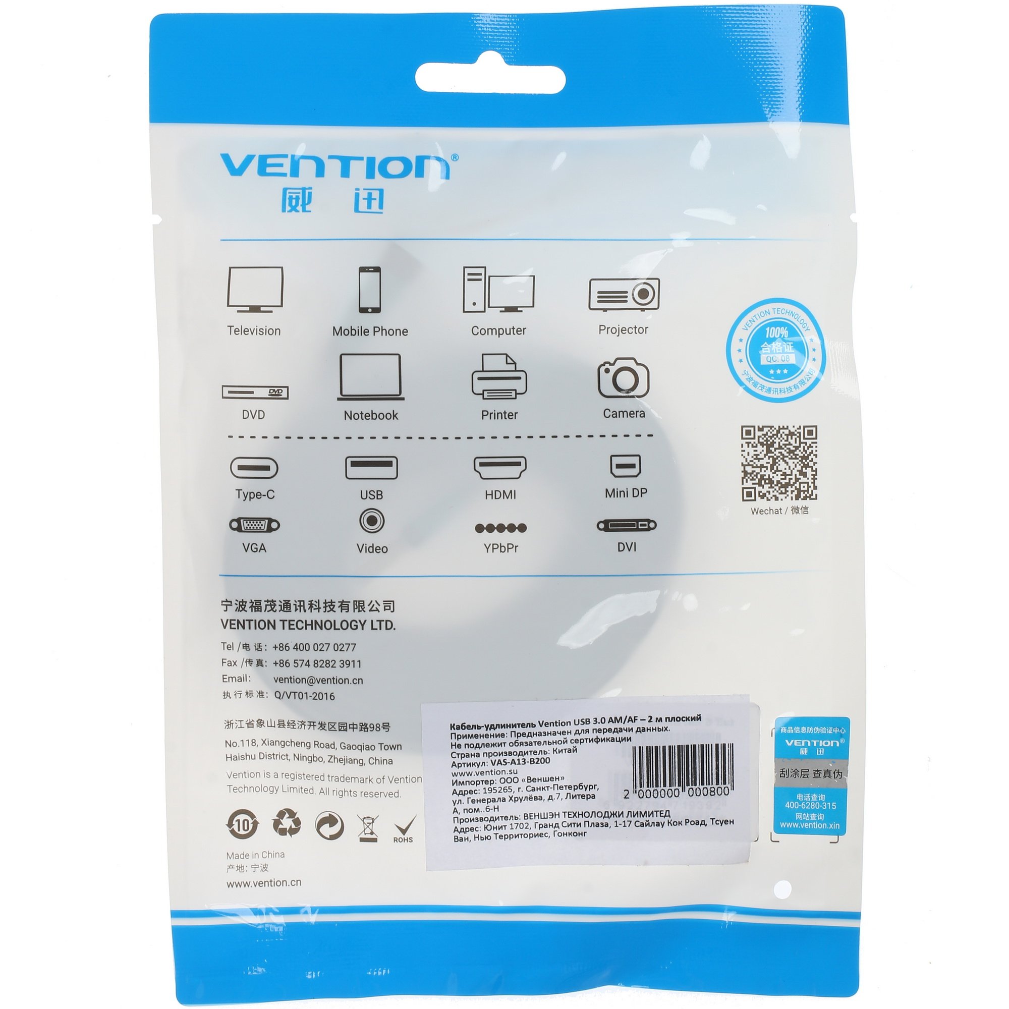 Кабель удлинительный Vention USB 3.0 A - USB 3.0 A поддерживает стандарт USB 3.0: об этом свидетельствует применение синего цвета при оформлении внешнего вида разъемов. Поддержка данного стандарта обеспечивает возможность организовать обмен данными на очень высокой скорости. Аксессуар имеет плоскую форму. Кабель можно легко смотать в катушку. Разъемы изделия очень долговечны. Кабель рассчитан на длительный срок эксплуатации.