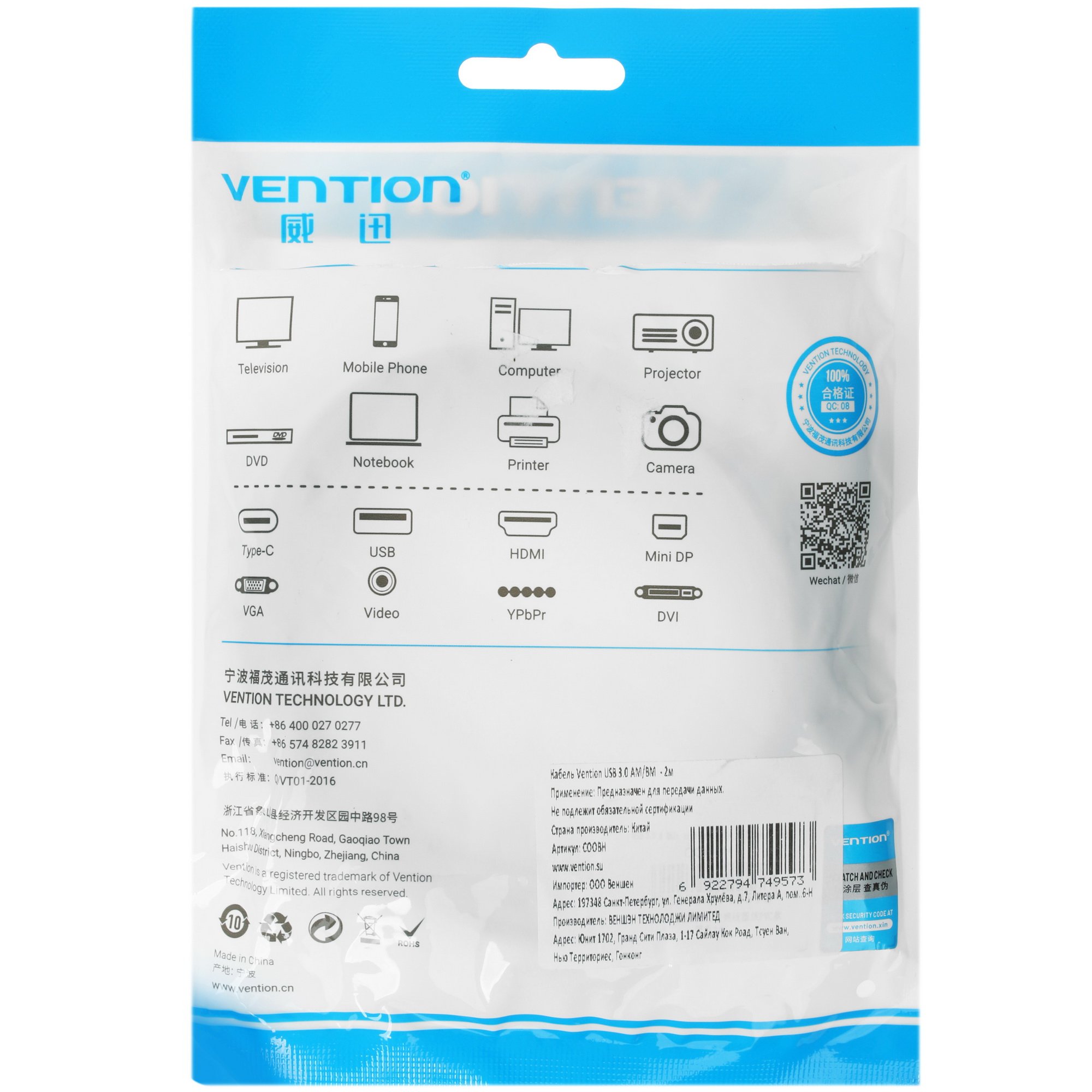 Кабель Vention USB 3.2 Gen1 Type-A - USB 3.2 Gen1 Type-B понадобится для подключения к компьютеру или ноутбуку периферийных устройств, оснащенных портом USB-B: сканера, принтера, разветвителя, МФУ или другой портативной техники. Оба интерфейса соответствуют стандарту 3.2 Gen 1, что обеспечивает обмен данными на скорости до 5 Гбит/с.