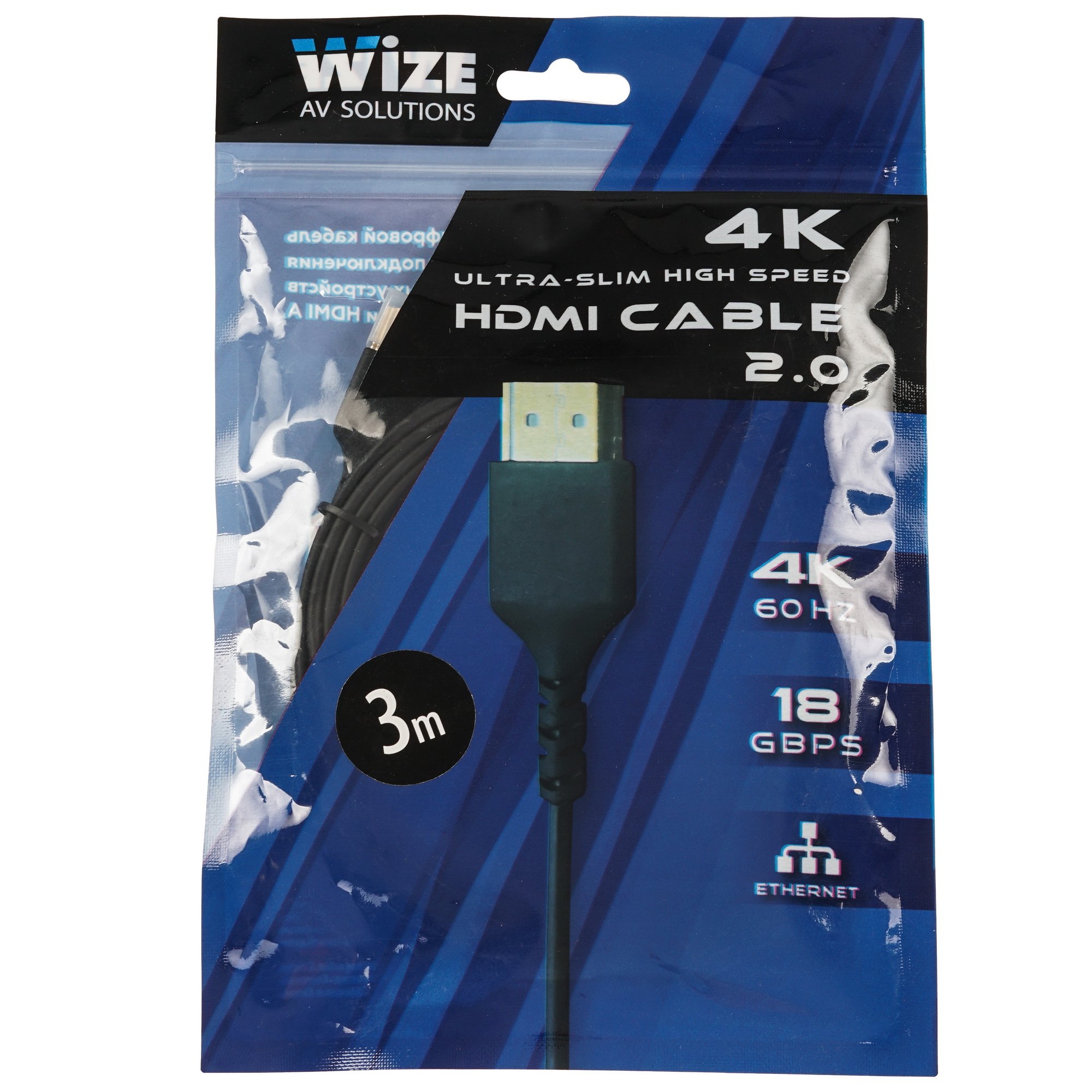 Кабель HDMI Wize Wize WAVC-HDMIUS-3M 3 м, v.2.0, 19M/19M, 4K/60 Hz 4:4:4, 36 AWG, HDCP 2.2,ультратонкий, позол.разъемы, черный, пакет