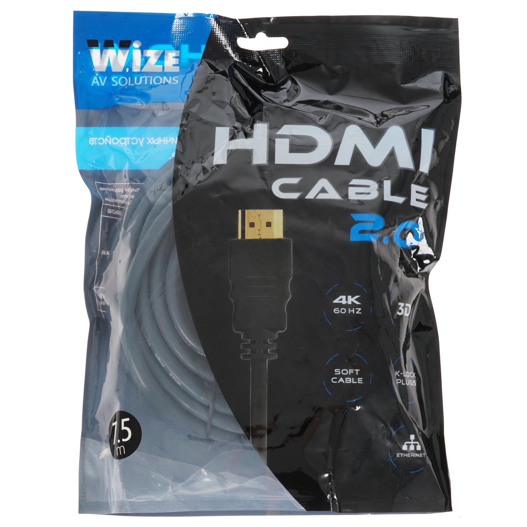 Кабель HDMI CP-HM-HM-7.5M Wize, 7.5 м, v.2.0, K-Lock, soft cable, 19M/19M, позол.разъемы, экран, темно-серый, пакет