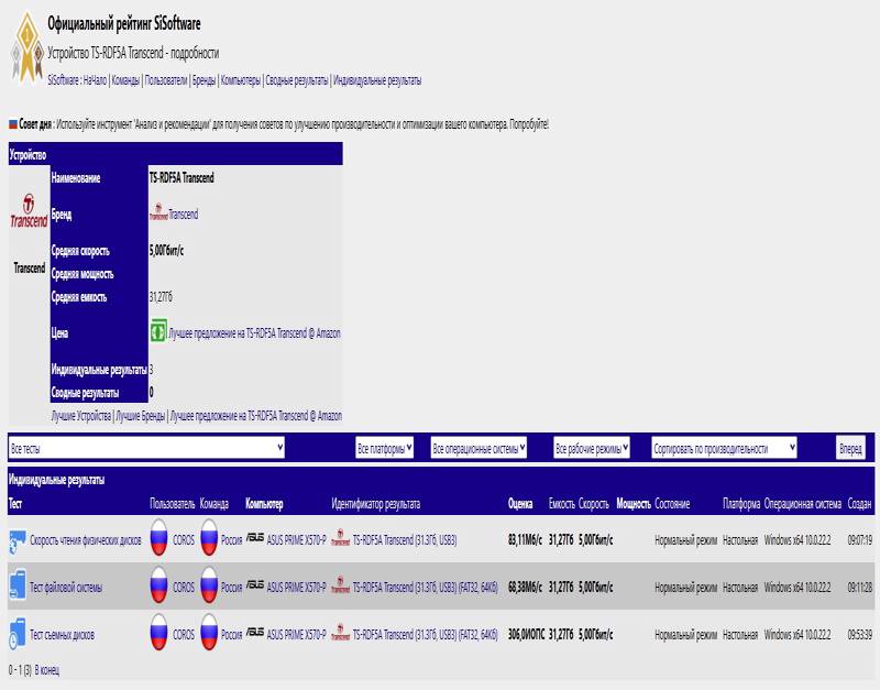 Для подключения к персональному компьютеру имеется интерфейс USB 3.1, совместимый с более ранним USB 2.0. Максимальная скорость записи информации равняется 90 МБ/c, поэтому для закачивания любимых фильмов много времени не потребуется. Портативное устройство Transcend TS-RDF5K оснащено датчиками питания и активности, позволяющими контролировать процесс работы устройства. Считыватель быстро распознается компьютером без установки дополнительного ПО.