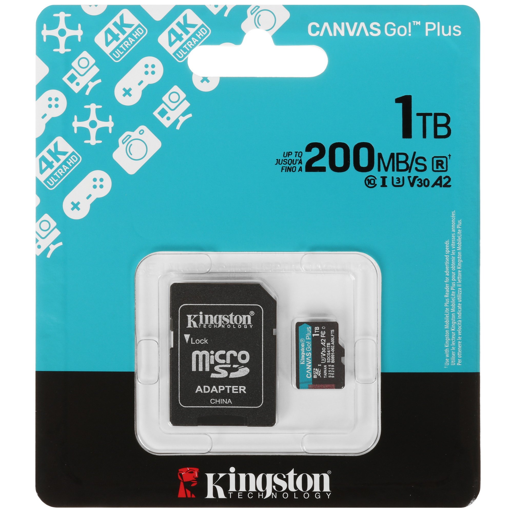 Карта памяти Kingston Canvas Go! Plus microSDXC 1000 ГБ [SDCG4/1TB] соответствует классам скорости A2, Class 10, UHS Class 3 и Video Class 30. Изделие предназначено для смартфонов, фотокамер и других устройств.