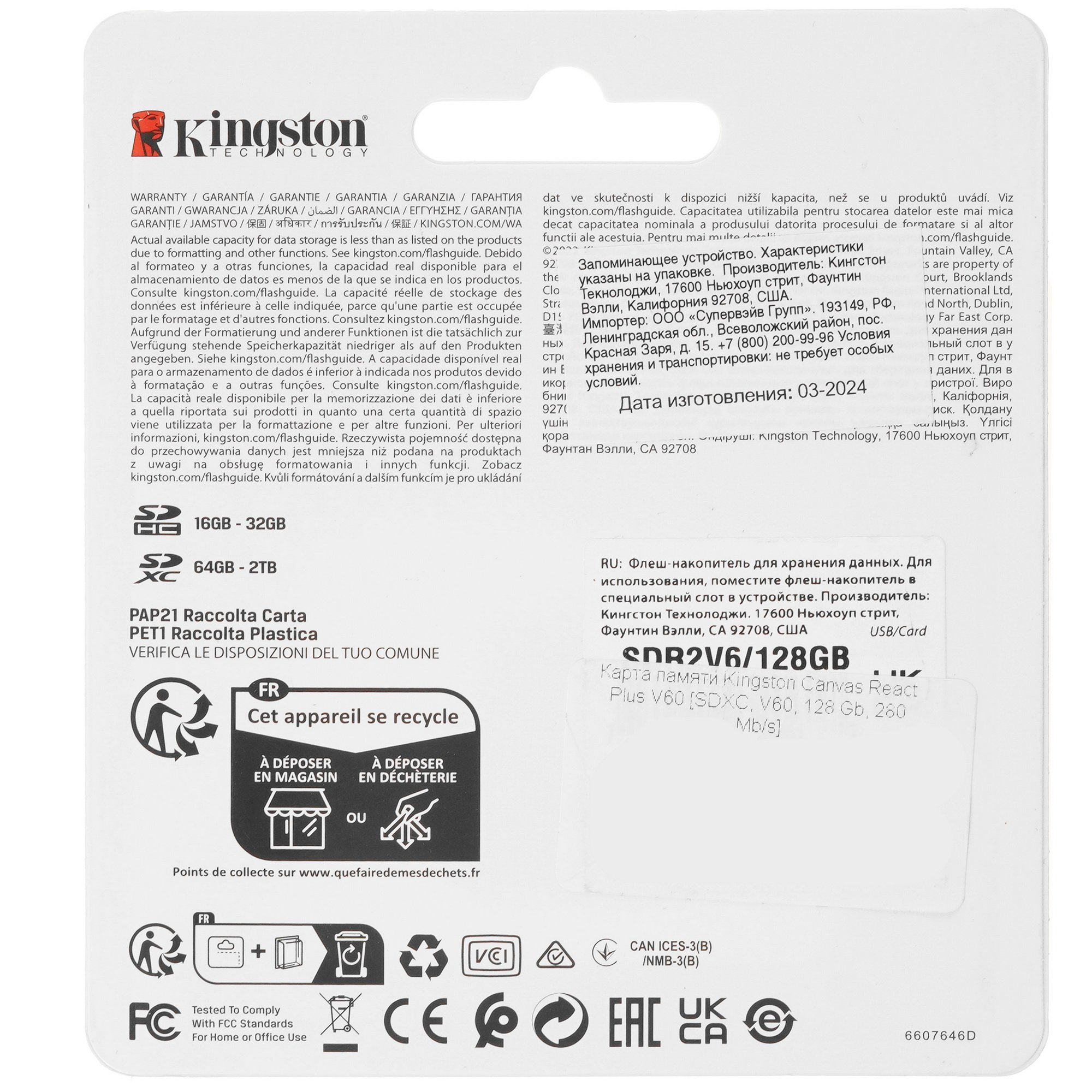 Флеш карта SDXC Kingston SDR2V6/128Gb Canvas React Plus w/o adapter 128Gb