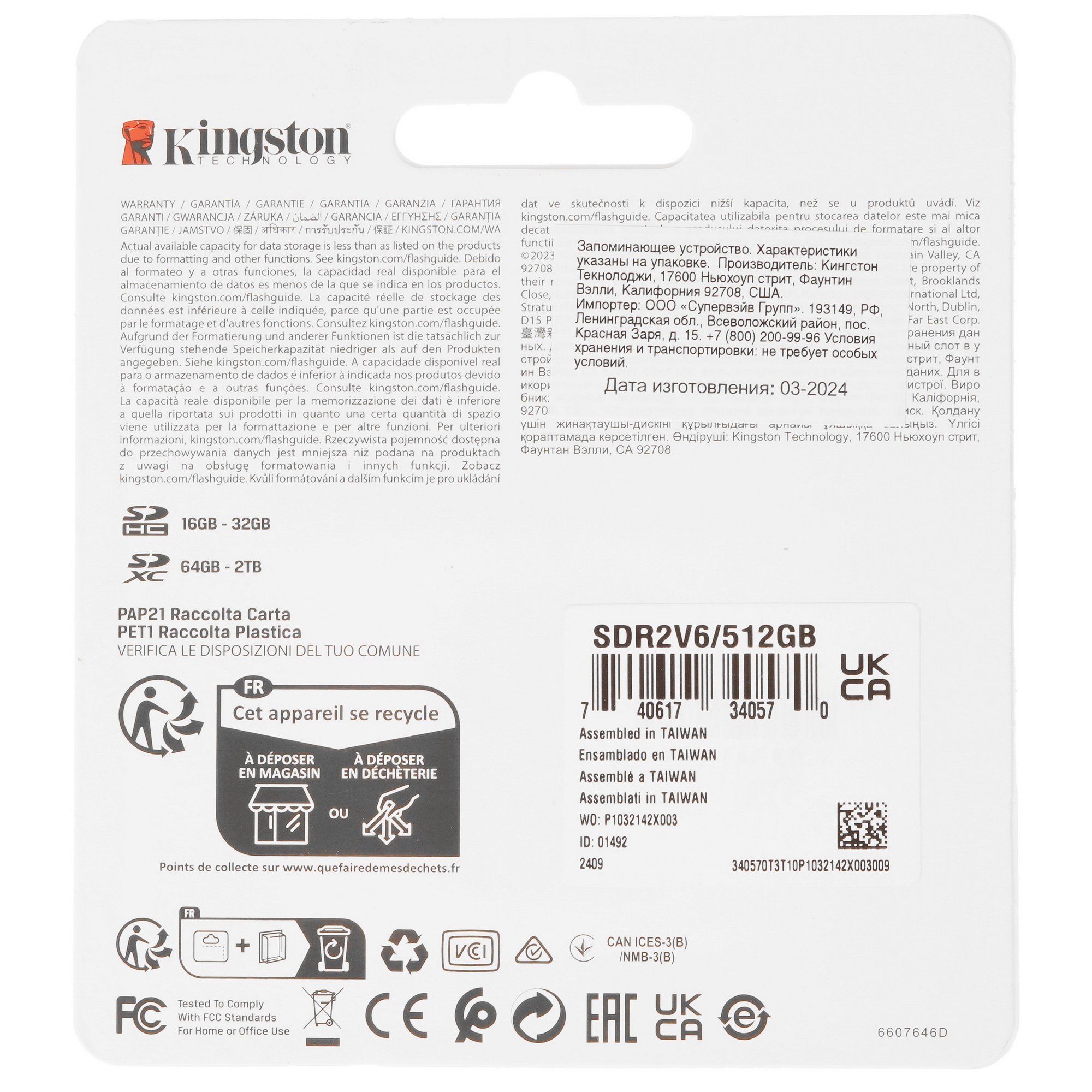 Флеш карта SDXC Kingston SDR2V6/512Gb Canvas React Plus w/o adapter 512Gb